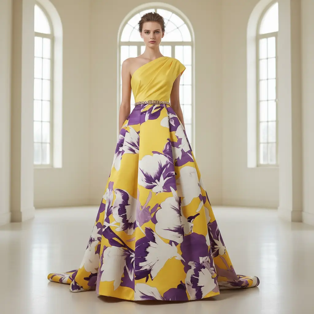 Il Tessuto Mikado a fantasia è considerato uno dei tessuti più eleganti e strutturati in assoluto, si presta alla creazione di abiti da cerimonia come abiti rigidi e strutturati, gonnelloni e giacche, inoltre è indicato per realizzare abiti da sposa.