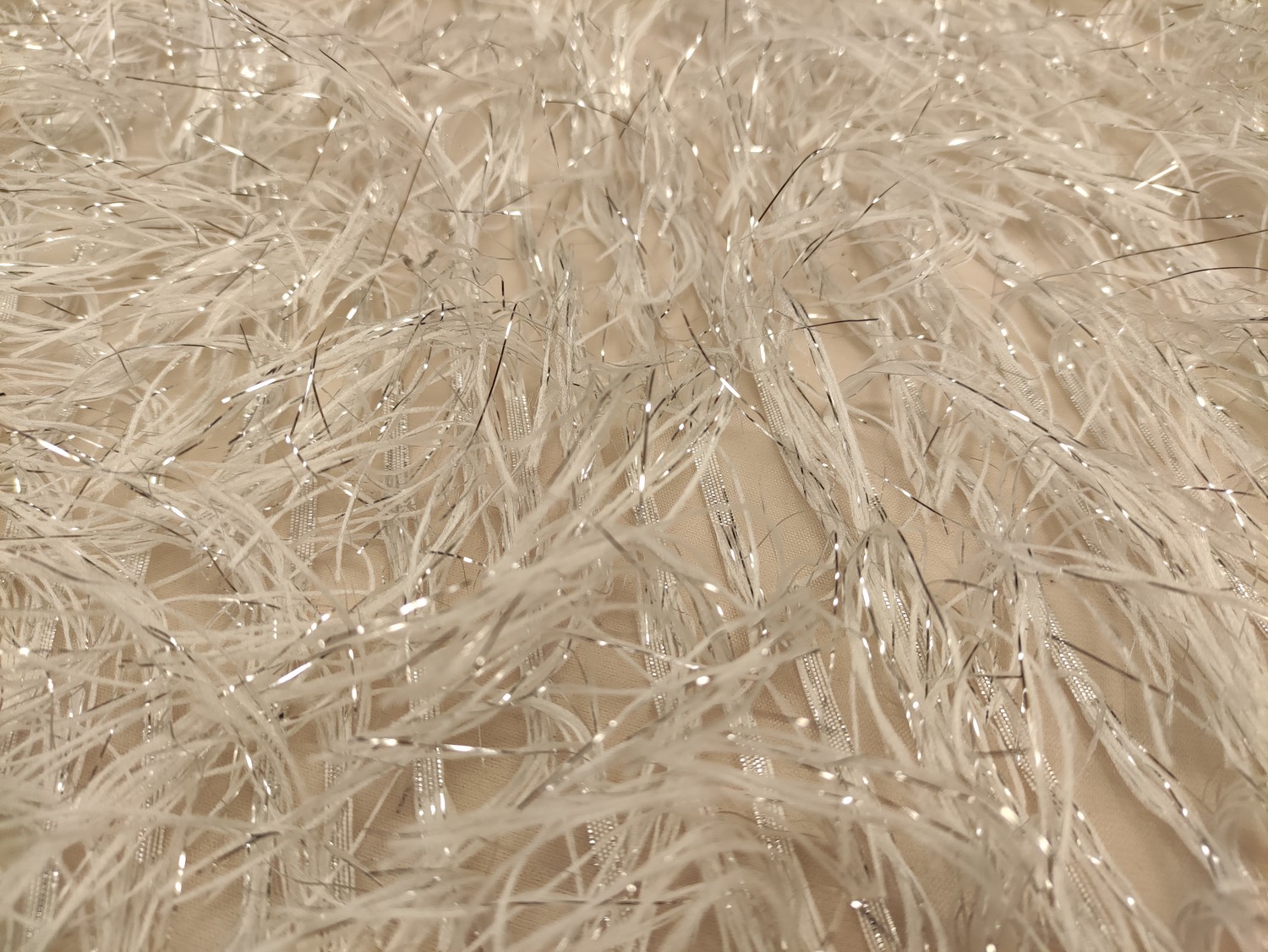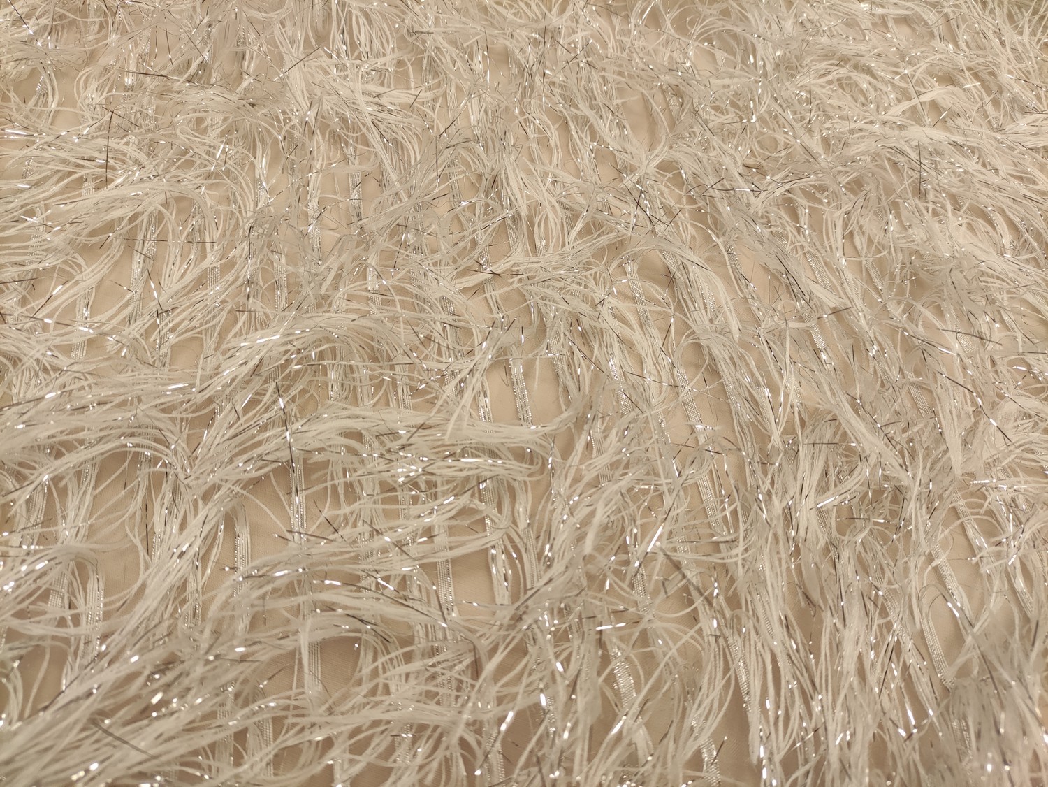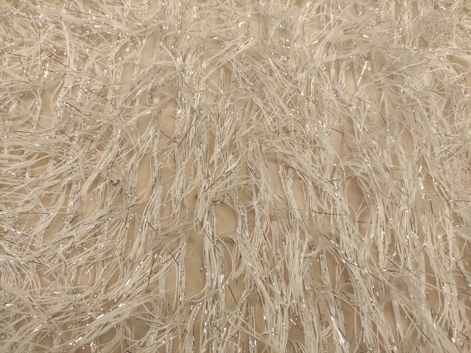 Tessuto organza con frange lurex argento
