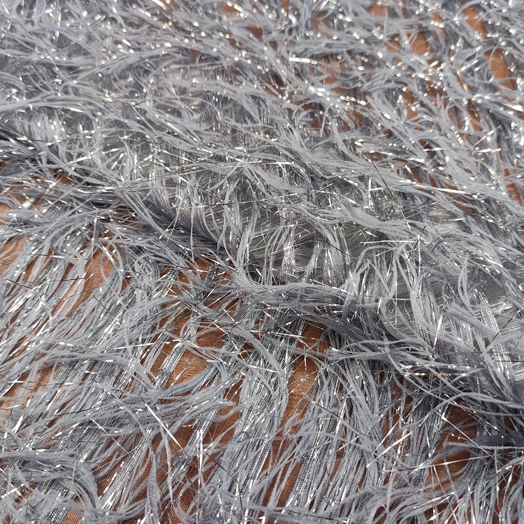 Tessuto organza con frange dalla mano lucida, semirigida, voluminosa e fluente, ideale per creare capi sartoriali da cerimonia e per le grandi occasioni originali e alla moda.