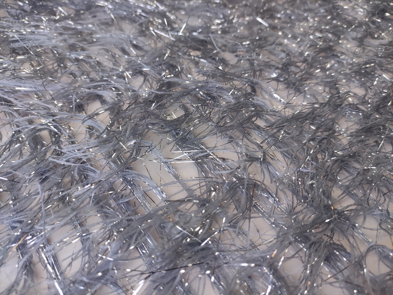 Tessuto organza con frange in 3D dalla mano lucida, morbida, voluminosa e fluente, ideale per creare capi sartoriali da cerimonia e per le grandi occasioni originali e alla moda.