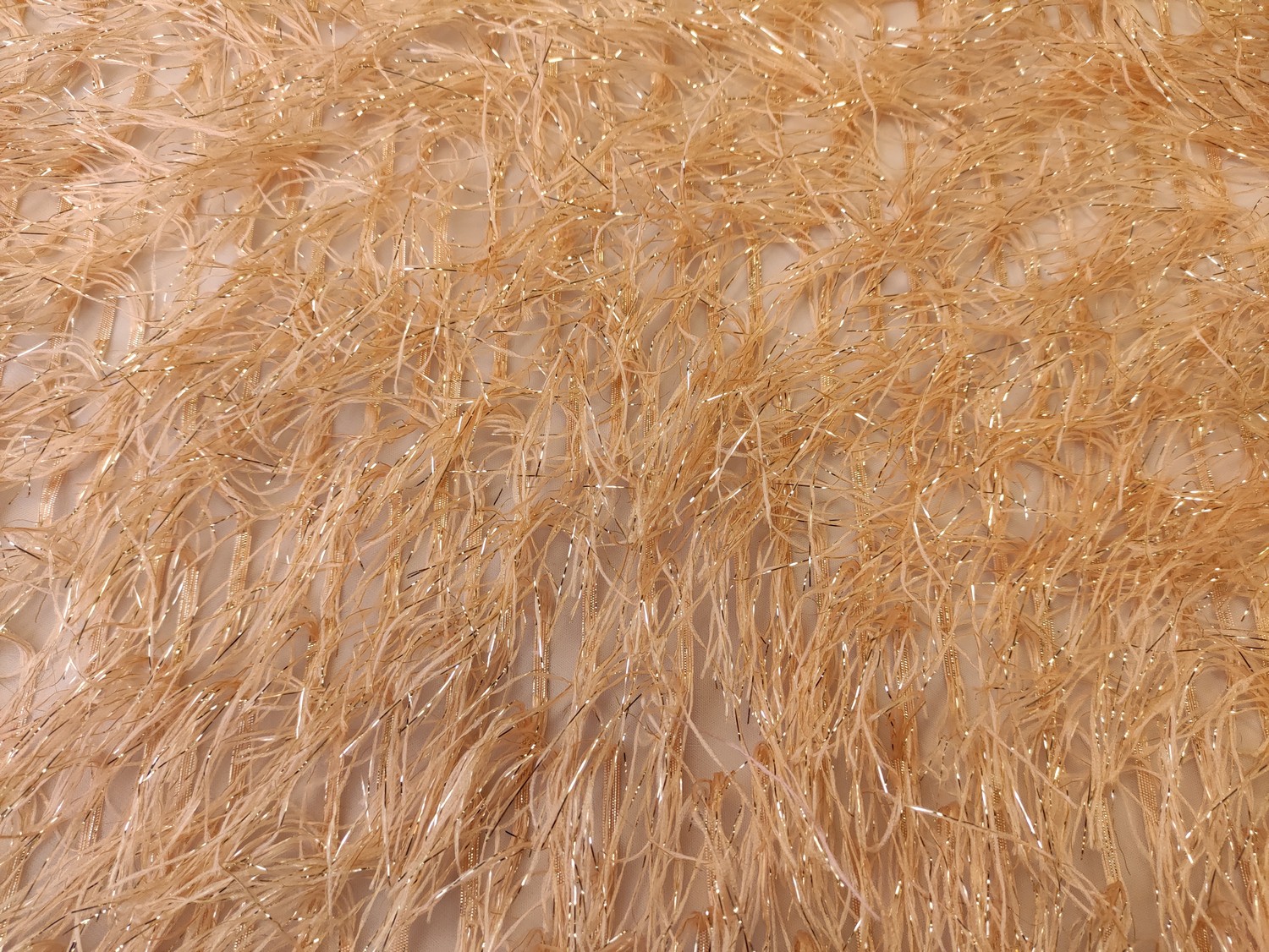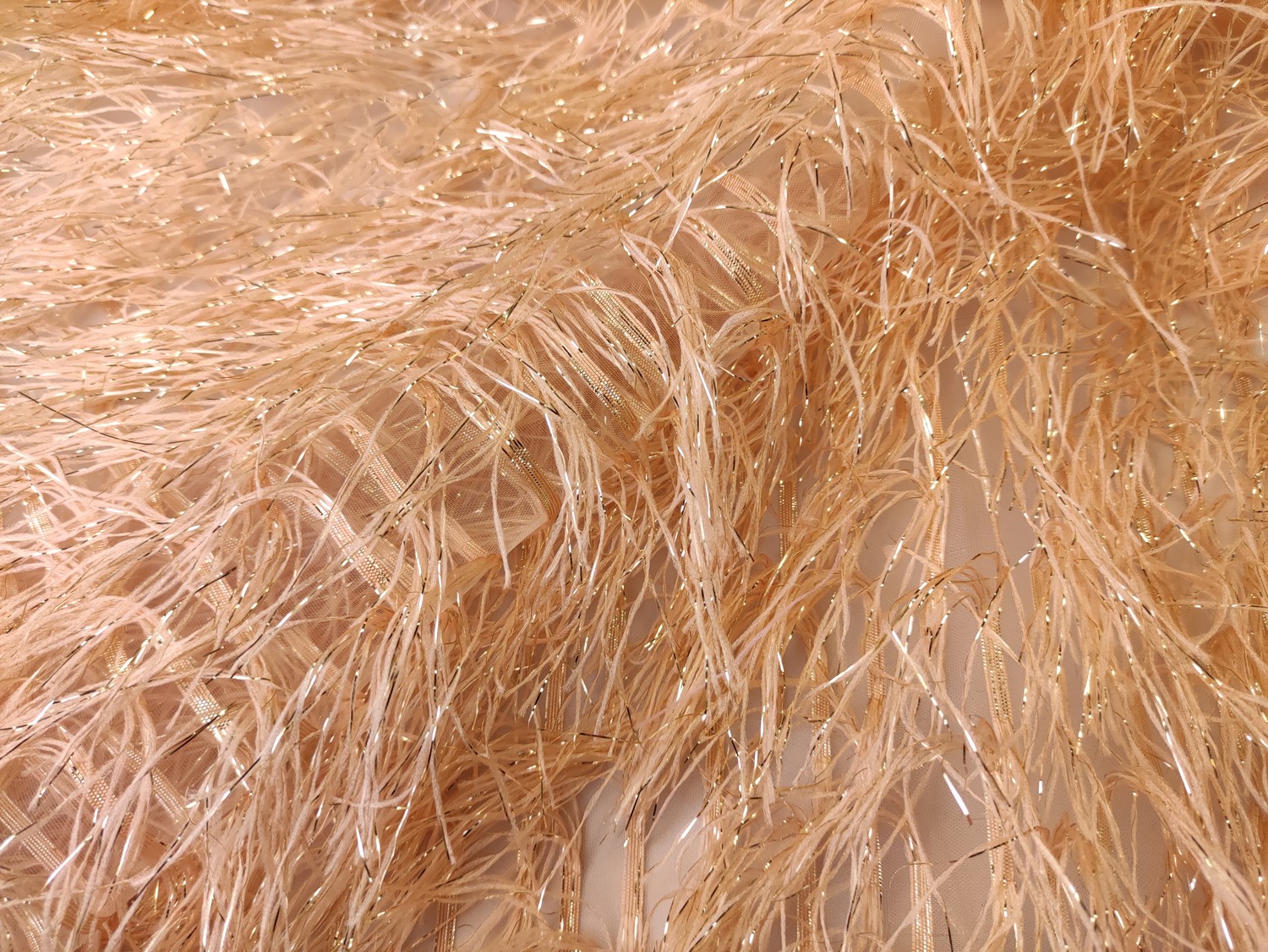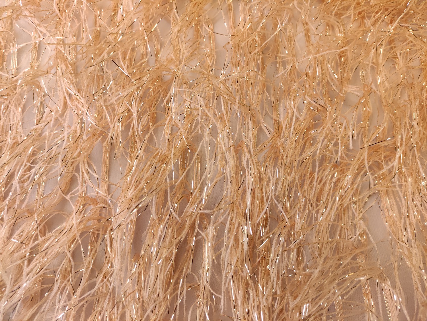 Tessuto organza con frange in 3D dalla mano lucida, morbida, voluminosa e fluente, ideale per creare capi sartoriali da cerimonia e per le grandi occasioni originali e alla moda.