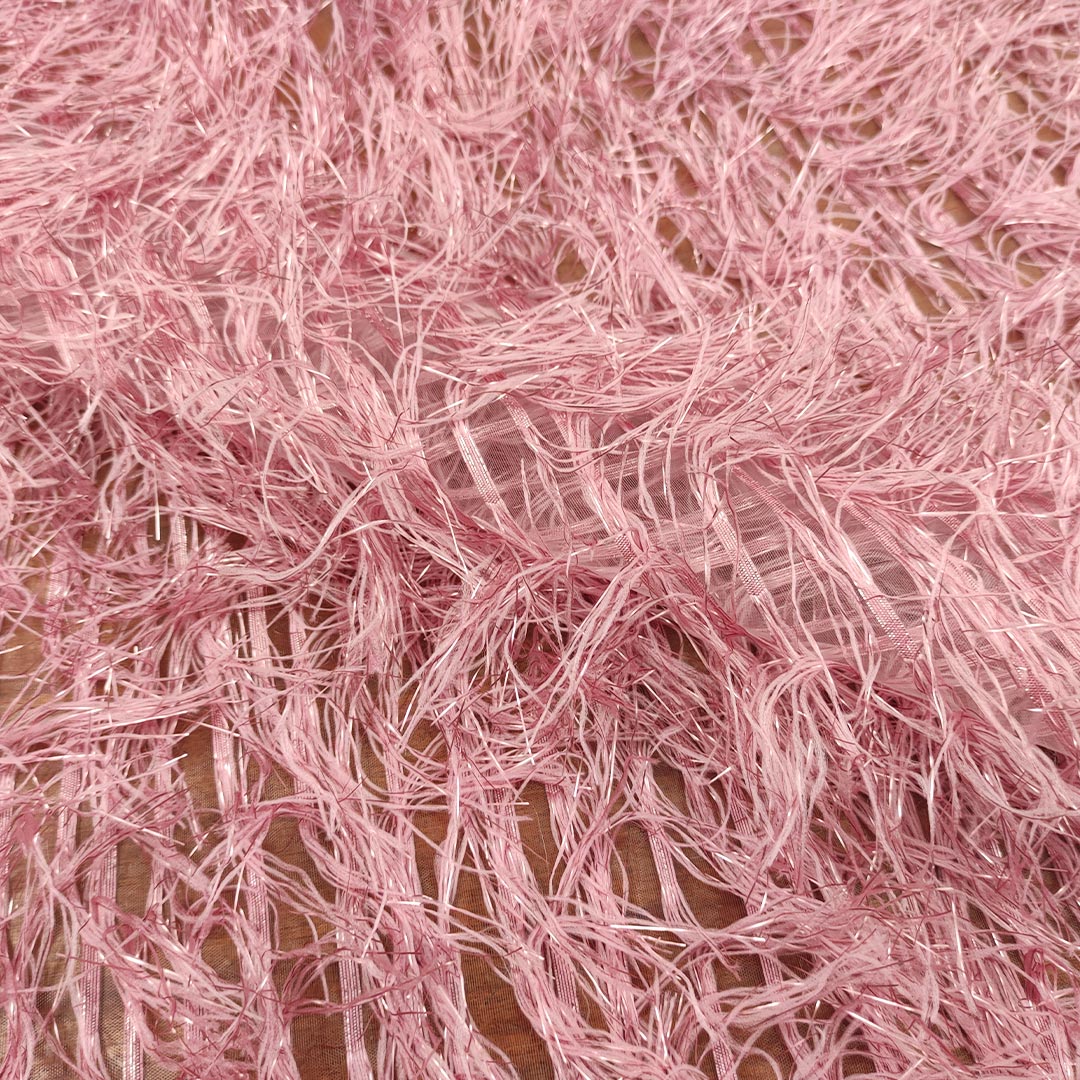 Tessuto organza con frange dalla mano lucida, semirigida, voluminosa e fluente, ideale per creare capi sartoriali da cerimonia e per le grandi occasioni originali e alla moda.