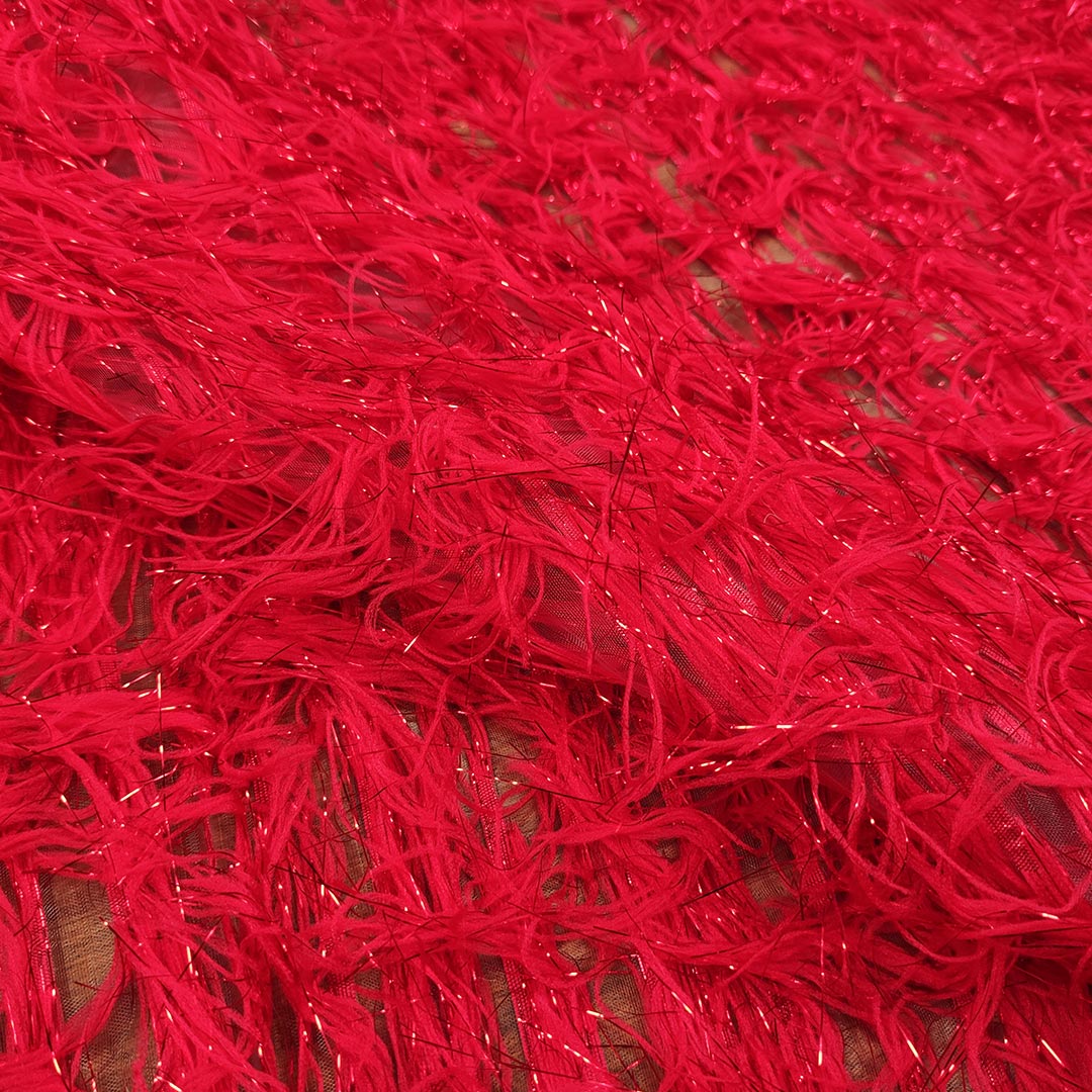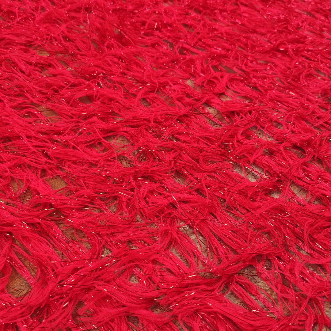Tessuto organza con frange dalla mano lucida, semirigida, voluminosa e fluente, ideale per creare capi sartoriali da cerimonia e per le grandi occasioni originali e alla moda.