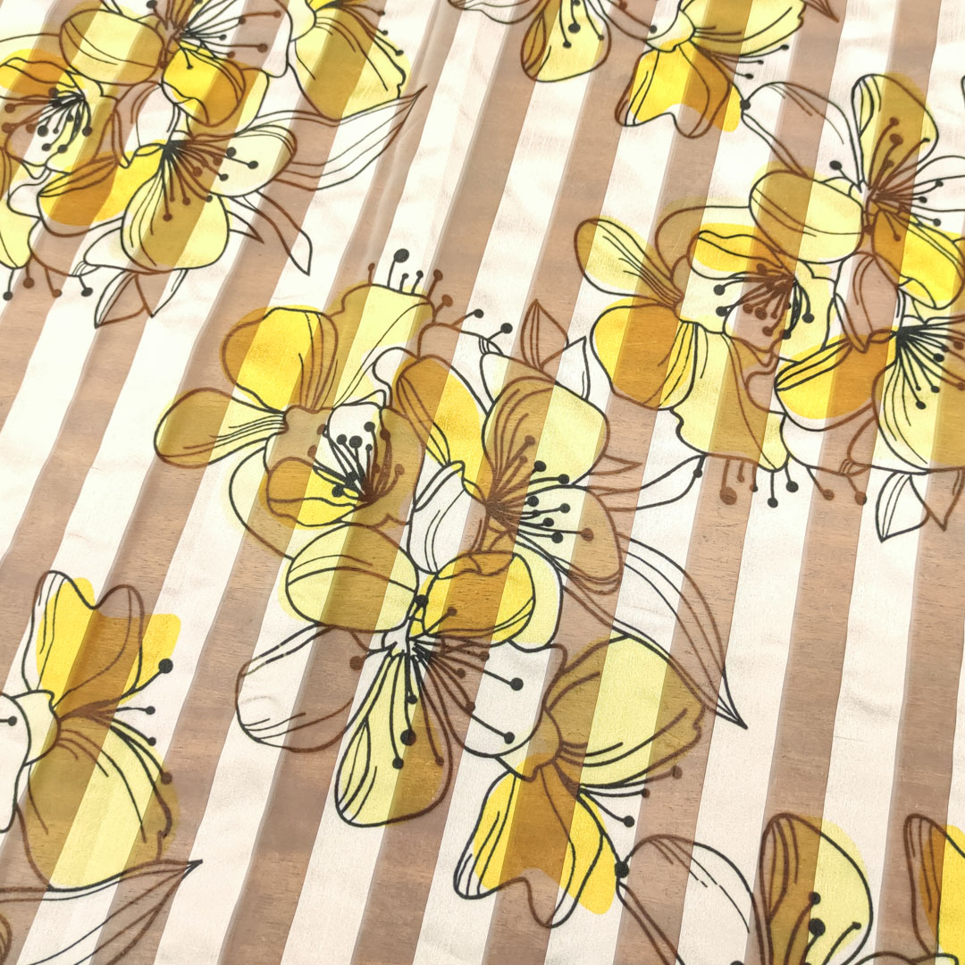 Tessuto Organza devorè a fantasia motivo floreale bianco – giallo – nero