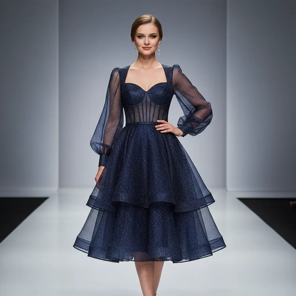 Tessuto Organza Glitter dalla mano semirigida e lucente, arricchito da lucenti glitter tono su tono, ideale per realizzare capi sfiziosi e lucenti.