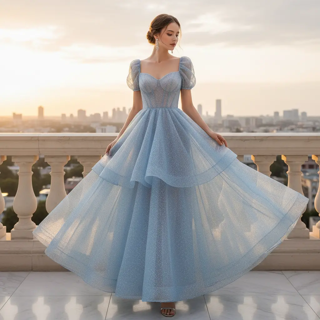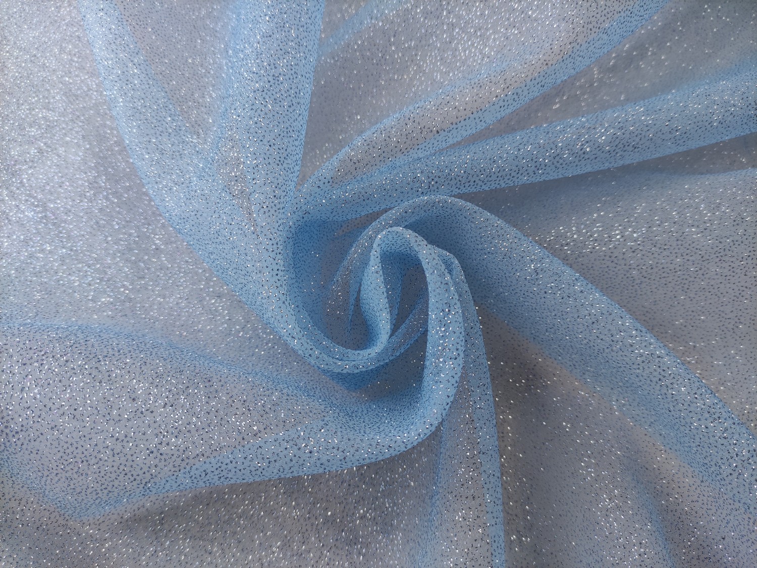 Tessuto Organza Glitter dalla mano semirigida e lucente, arricchito da lucenti glitter tono su tono, ideale per realizzare capi sfiziosi e lucenti.