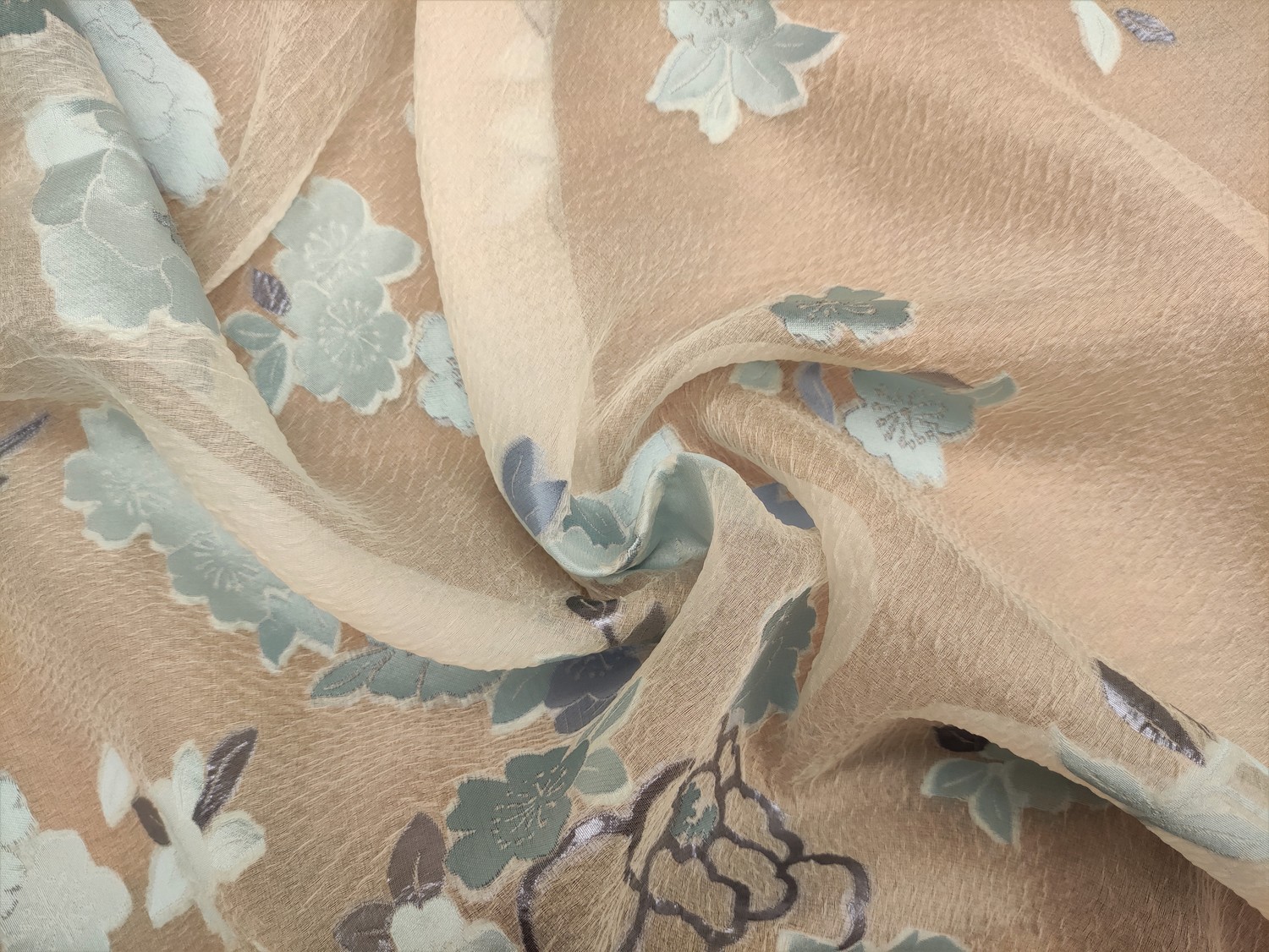 Tessuto Organza jacquard ideale per realizzare capi eleganti e strutturati, si presta alla creazione di abiti ampi, giacche e gonne.