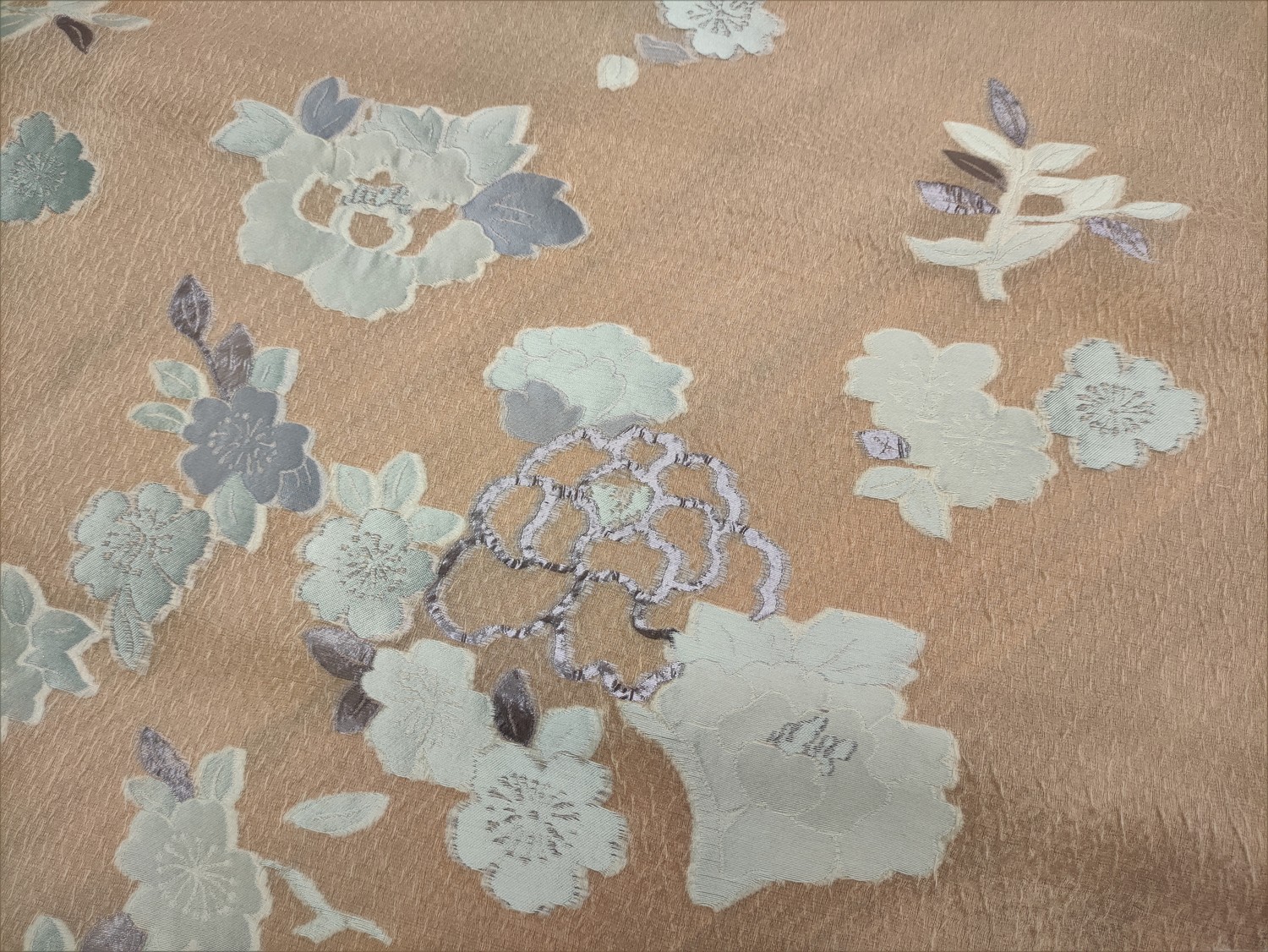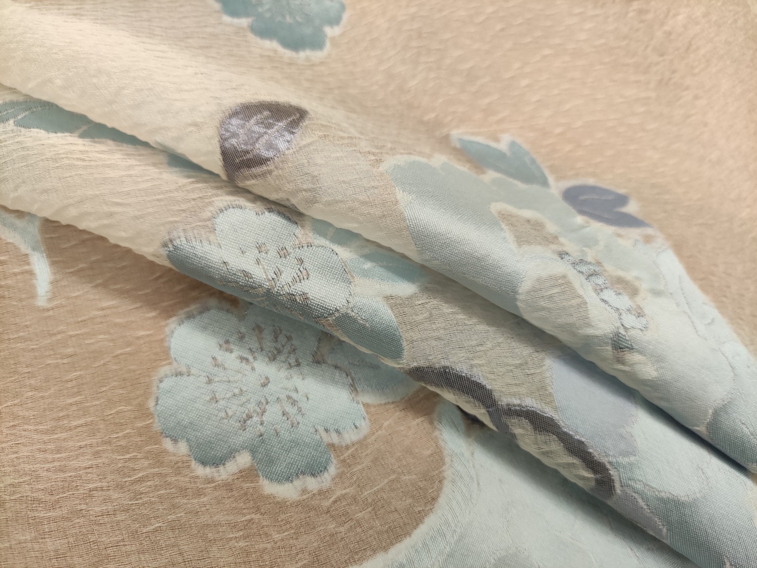 Tessuto Organza jacquard motivo floreale bianco seta – celeste