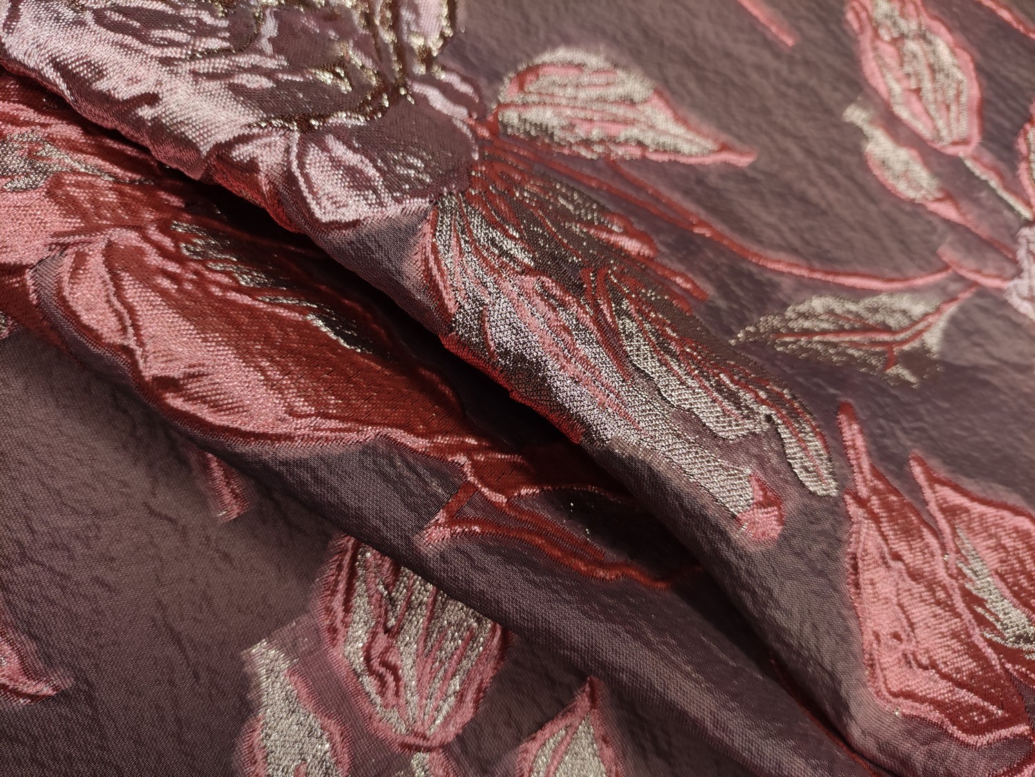 Tessuto Organza jacquard ideale per realizzare capi eleganti e strutturati, si presta alla creazione di abiti ampi, giacche e gonne.