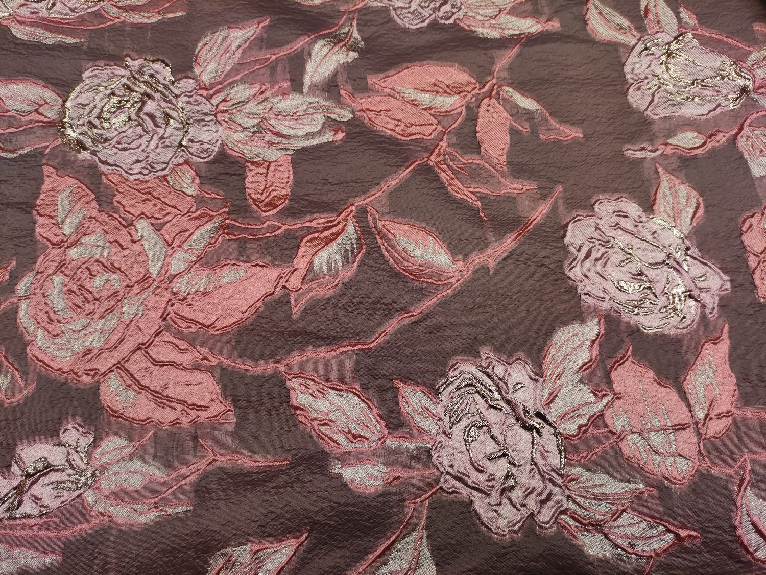 Tessuto Organza jacquard motivo floreale rosa gold – oro