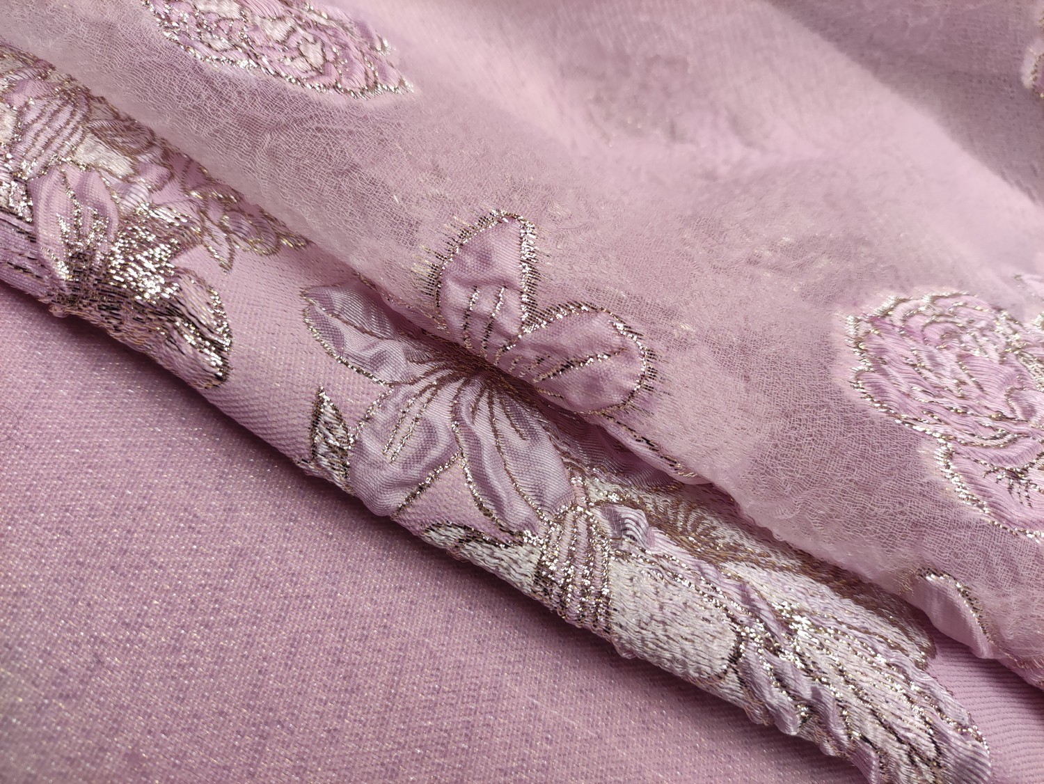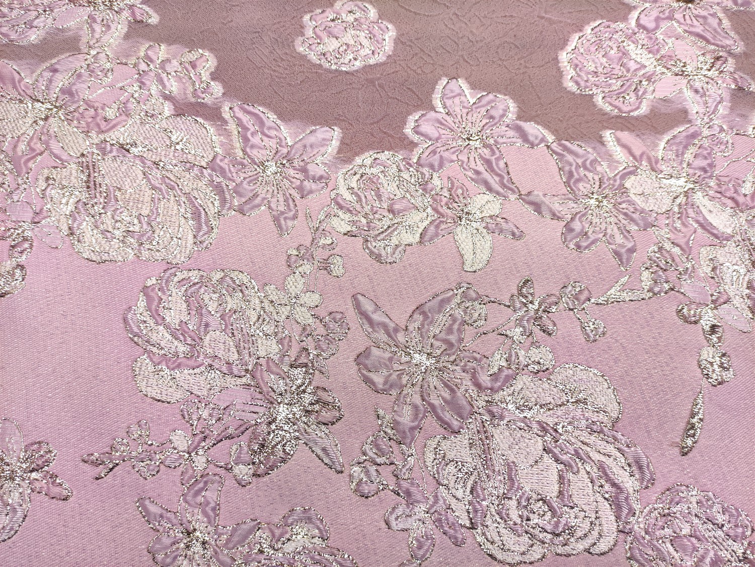 Tessuto Organza jacquard motivo floreale rosa – oro