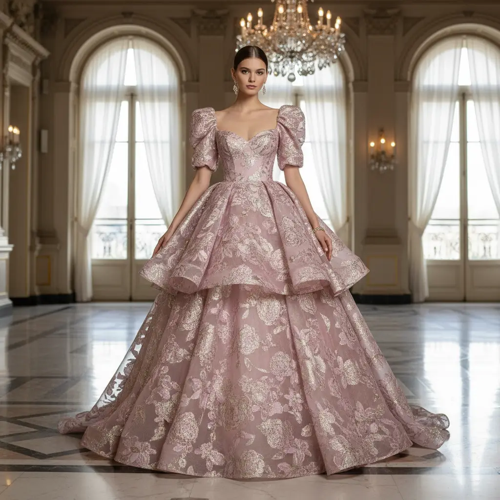 Tessuto Organza jacquard ideale per realizzare capi eleganti e strutturati, si presta alla creazione di abiti ampi, giacche e gonne.