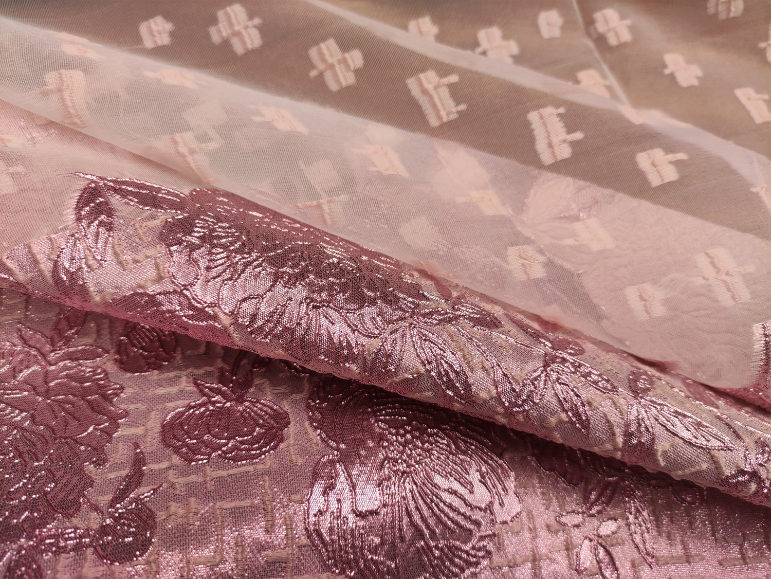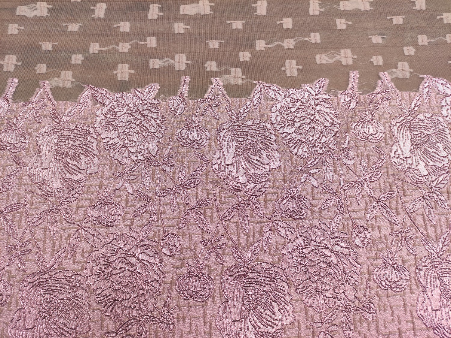 Tessuto Organza jacquard motivo floreale rosa
