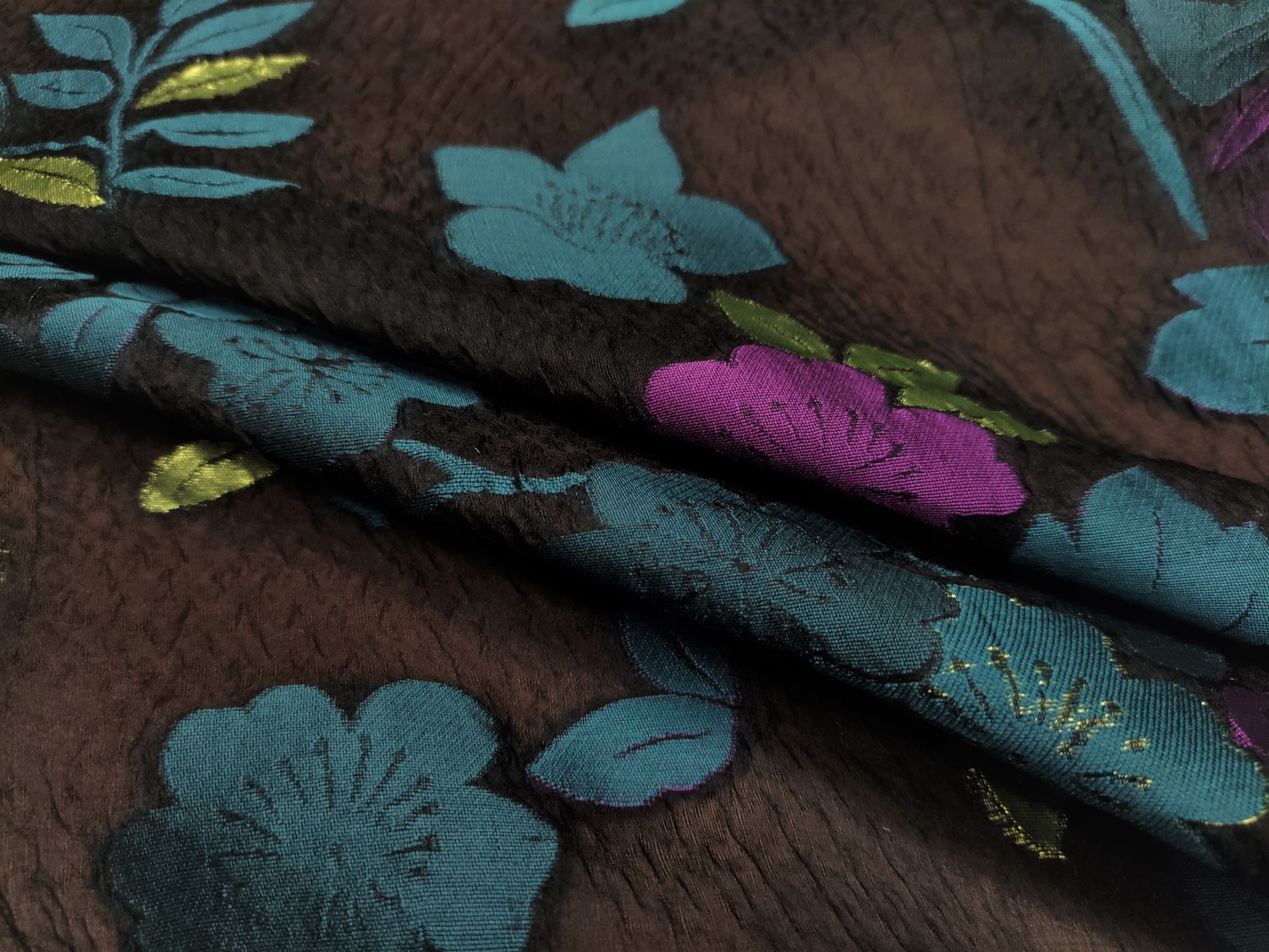 Tessuto Organza jacquard ideale per realizzare capi eleganti e strutturati, si presta alla creazione di abiti ampi, giacche e gonne.