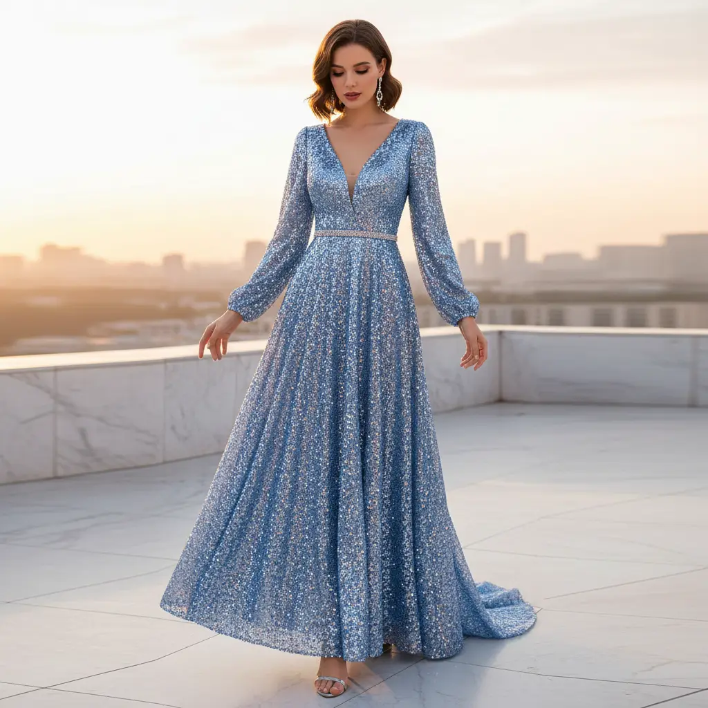 Tessuto glitter ricamato con paillettes ideale per creare capi eleganti e brillanti.