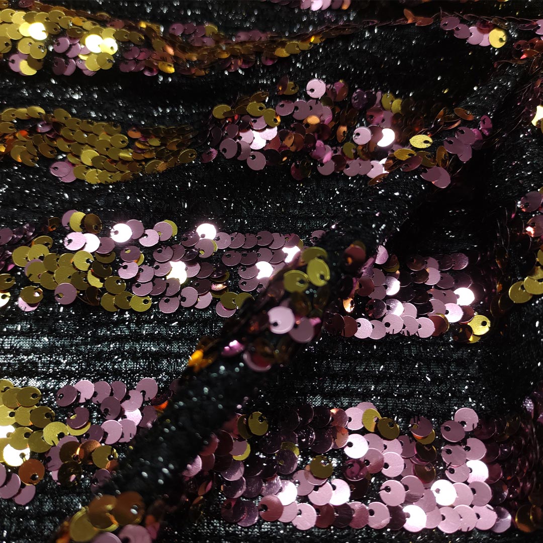 Tessuto Jersey Lurex ricamato con paillettes cipolla – oro – nero