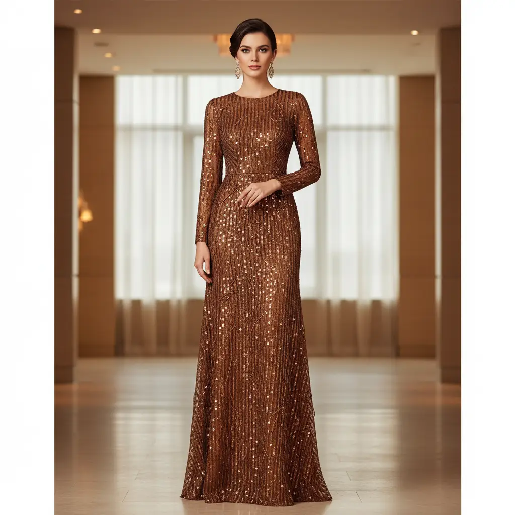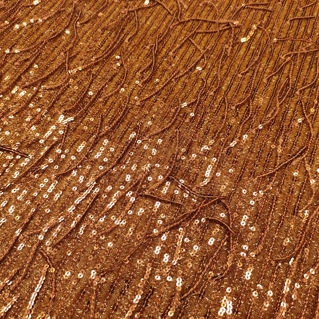 Tessuto lurex Ricamato con paillettes a frange bronzo