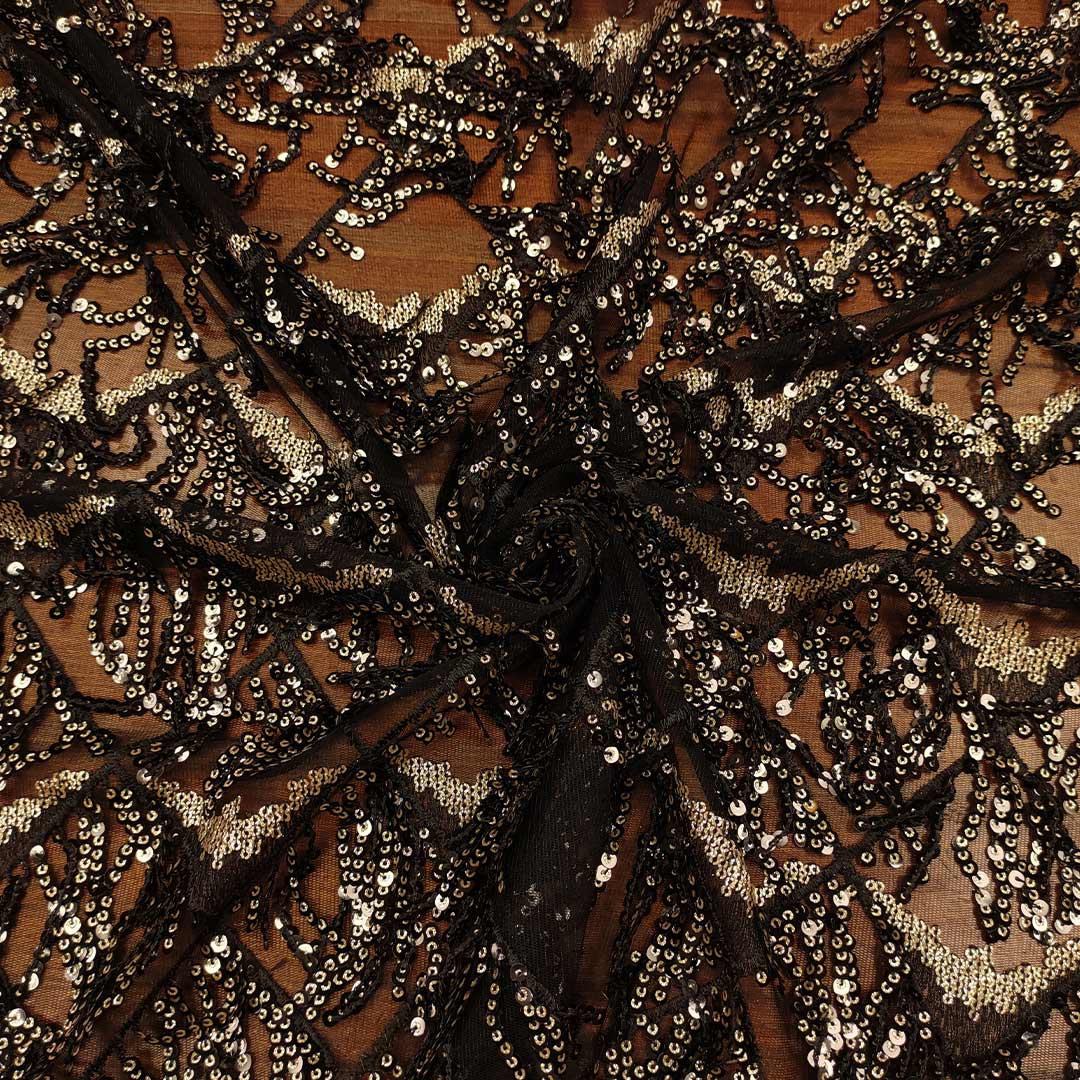 Tessuto Tulle elasticizzato ricamato con paillettes ideale per creare capi eleganti e brillanti.
