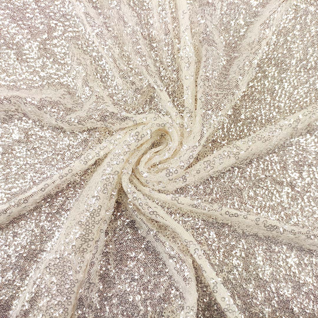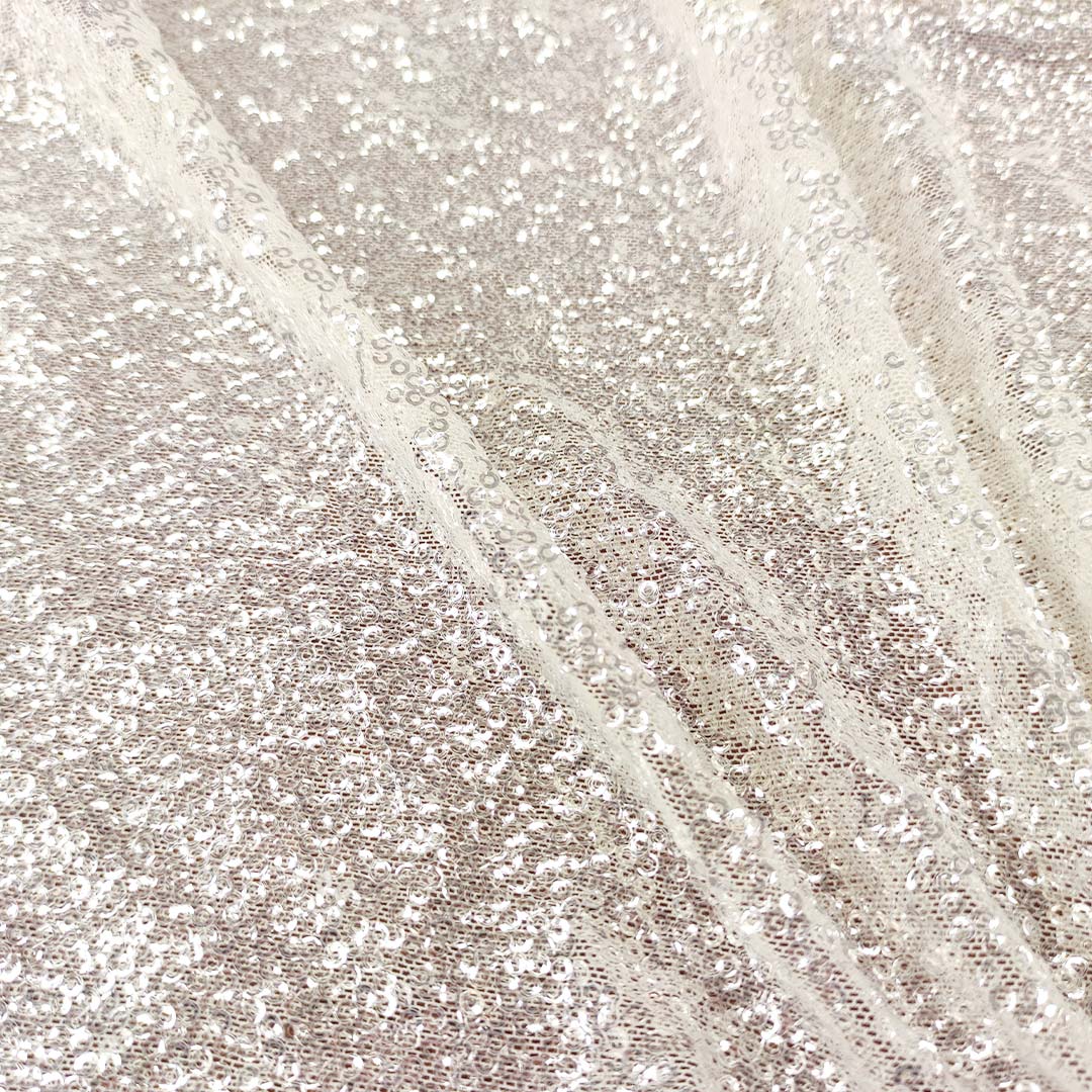 Tessuto Tulle Elasticizzato Ricamato con paillettes a specchio tinta unita bianco seta