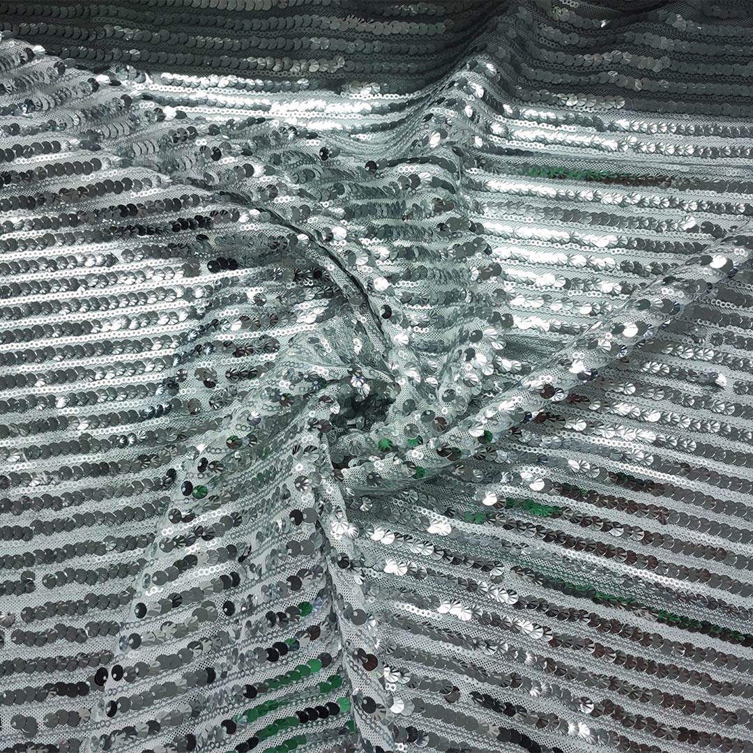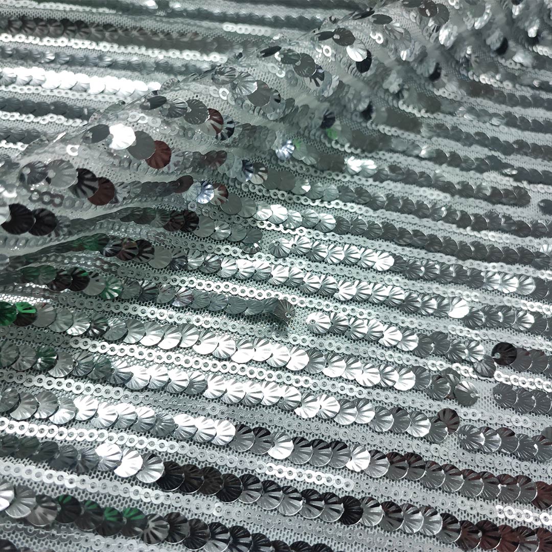 Tessuto Tulle Elasticizzato Ricamato con paillettes argento
