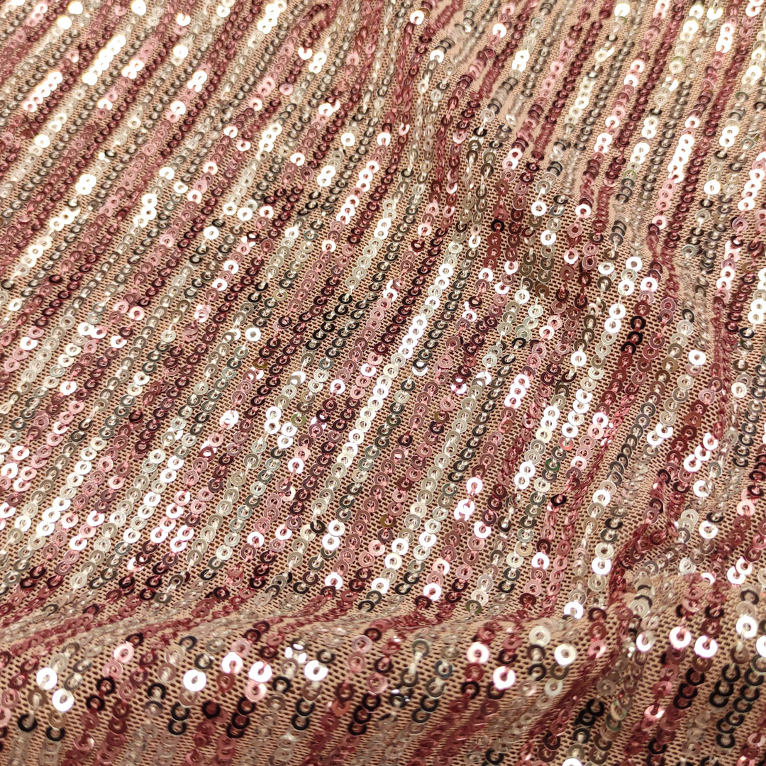 Tessuto Tulle Elasticizzato Ricamato con paillettes rosa – argento