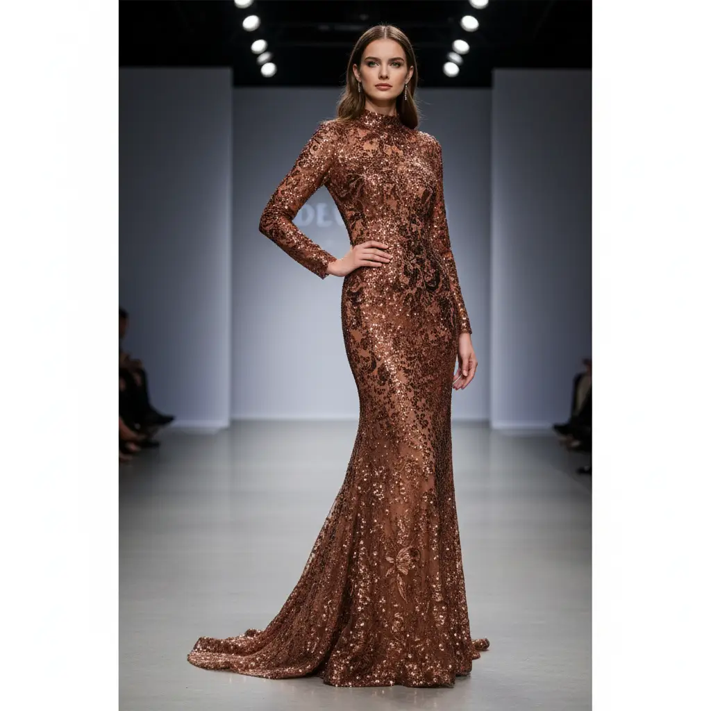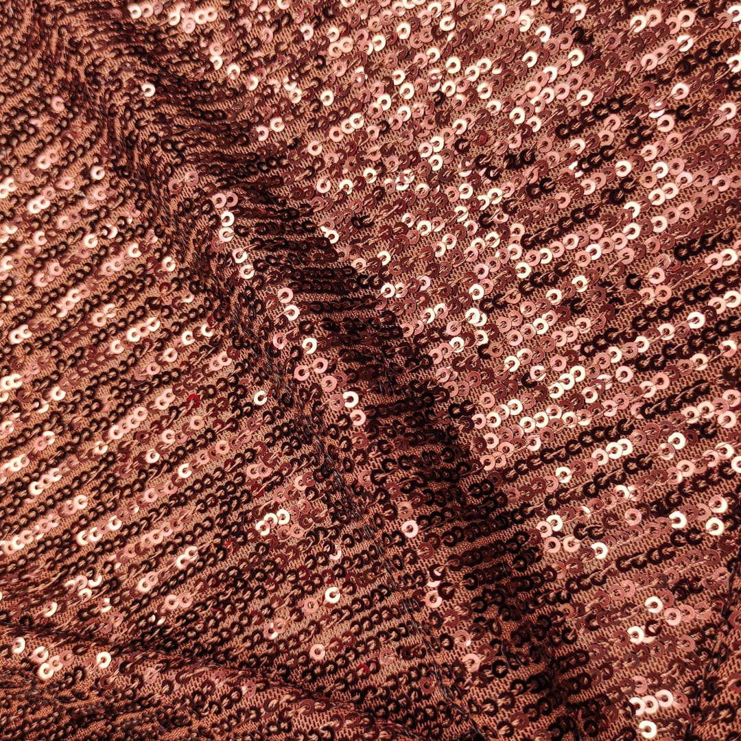 Tessuto Tulle Elasticizzato Ricamato con paillettes tinta unita cioccolato
