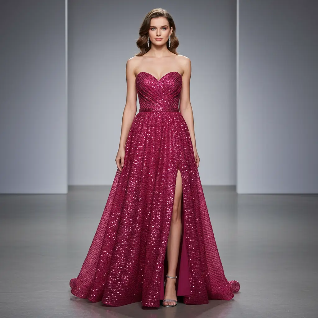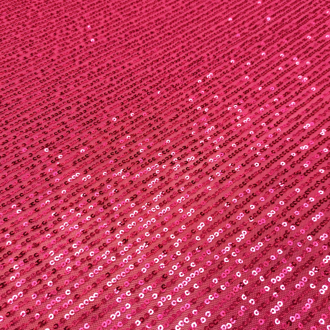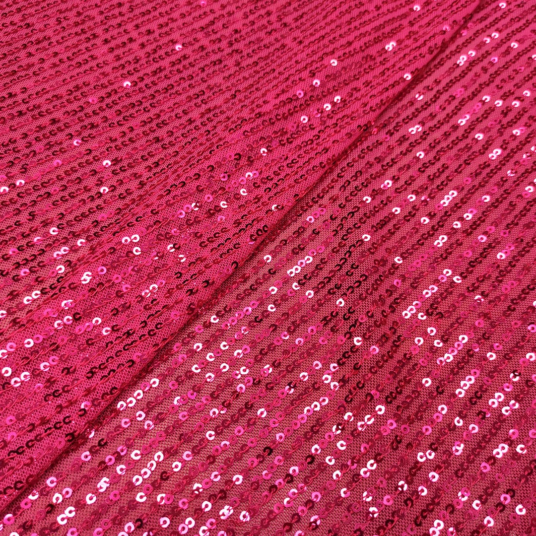 Tessuto Tulle Elasticizzato Ricamato con paillettes tinta unita fucsia