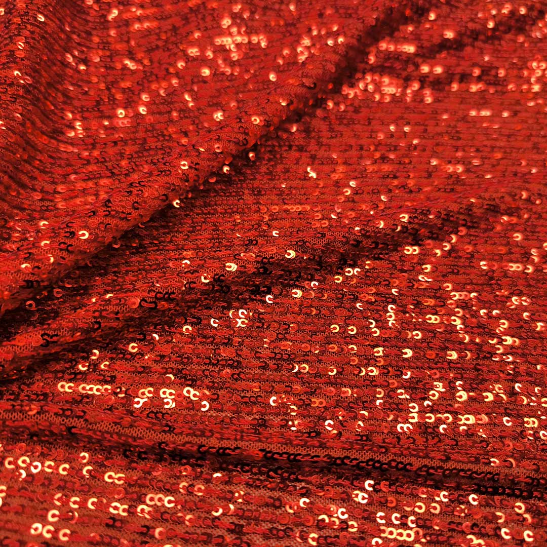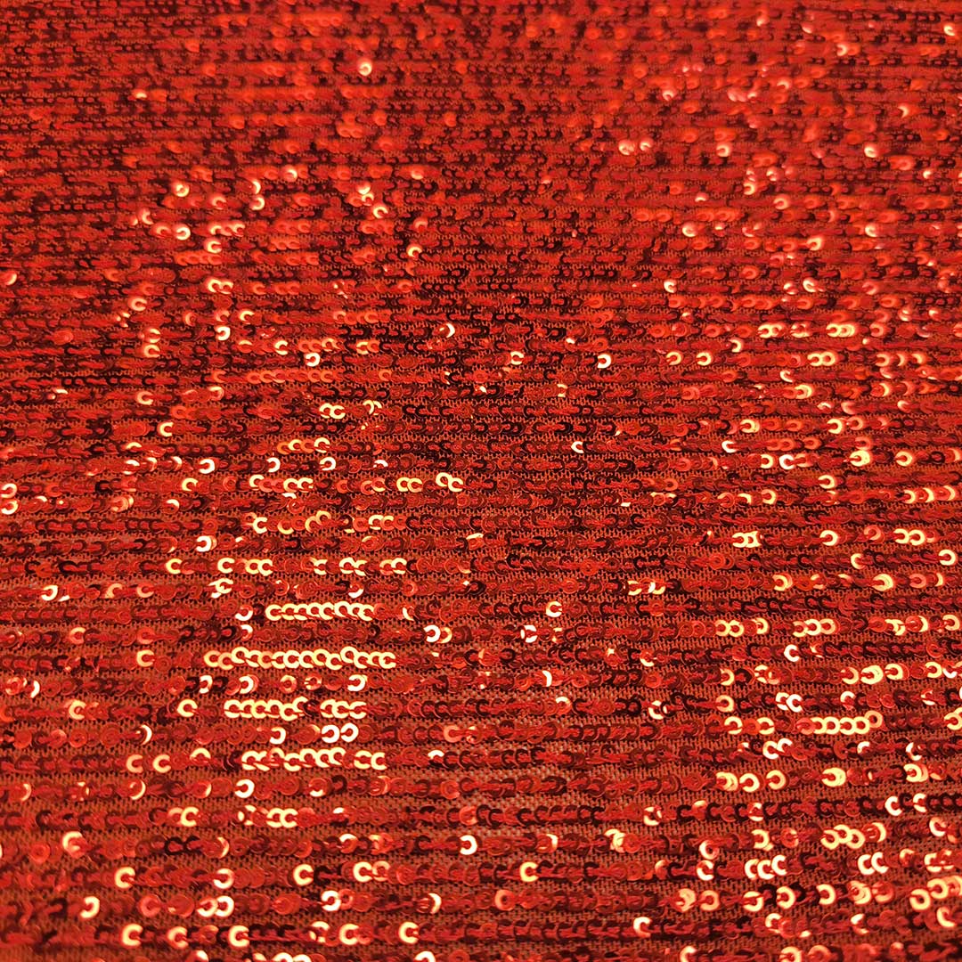 Tessuto Tulle Elasticizzato Ricamato con paillettes tinta unita rosso