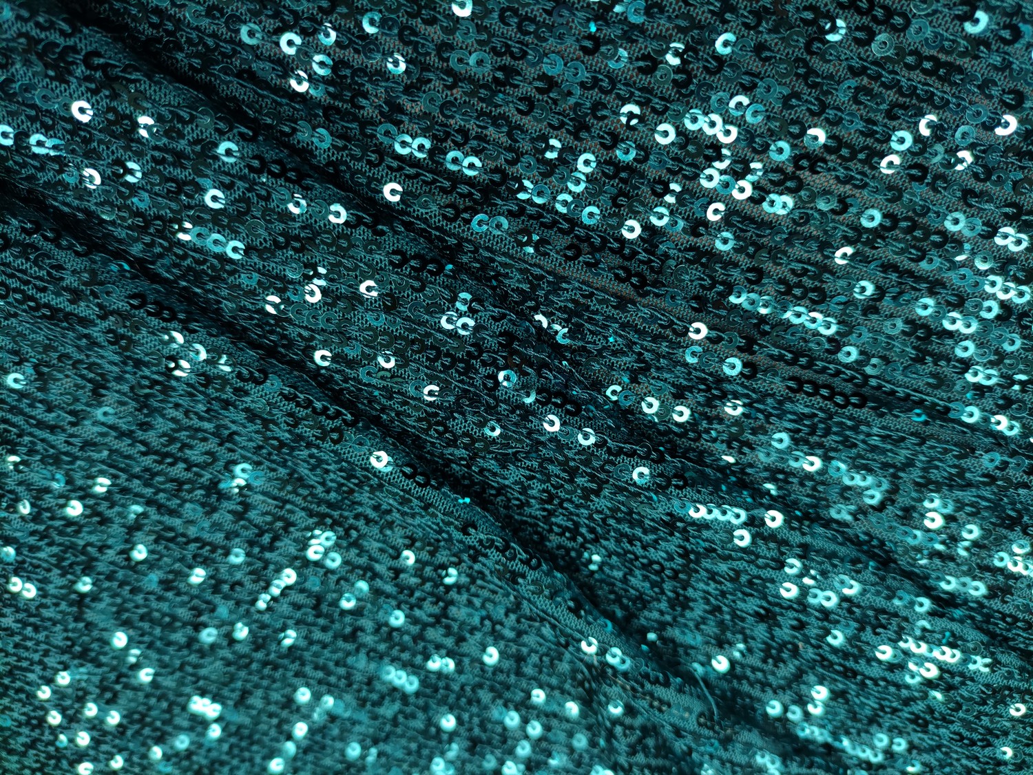 Tessuto Tulle Elasticizzato Ricamato con paillettes verde petrolio