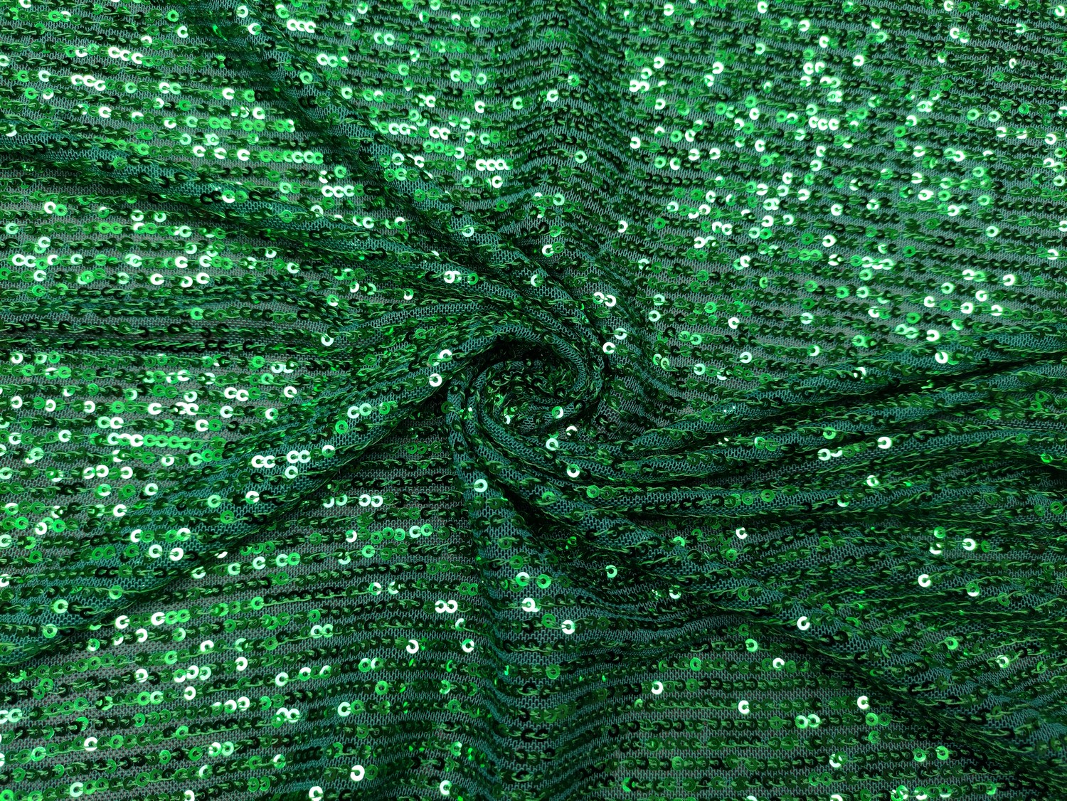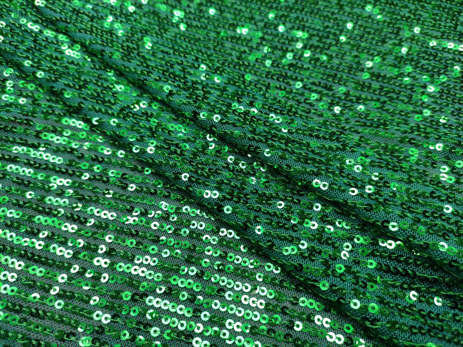 Tessuto Tulle Elasticizzato Ricamato con paillettes verde prato