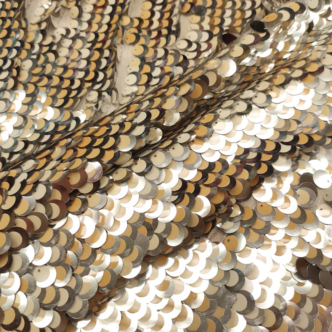 Tessuto Tulle mano seta ricamato con paillettes ideale per realizzare capi da cerimonia esclusivi ed eleganti.