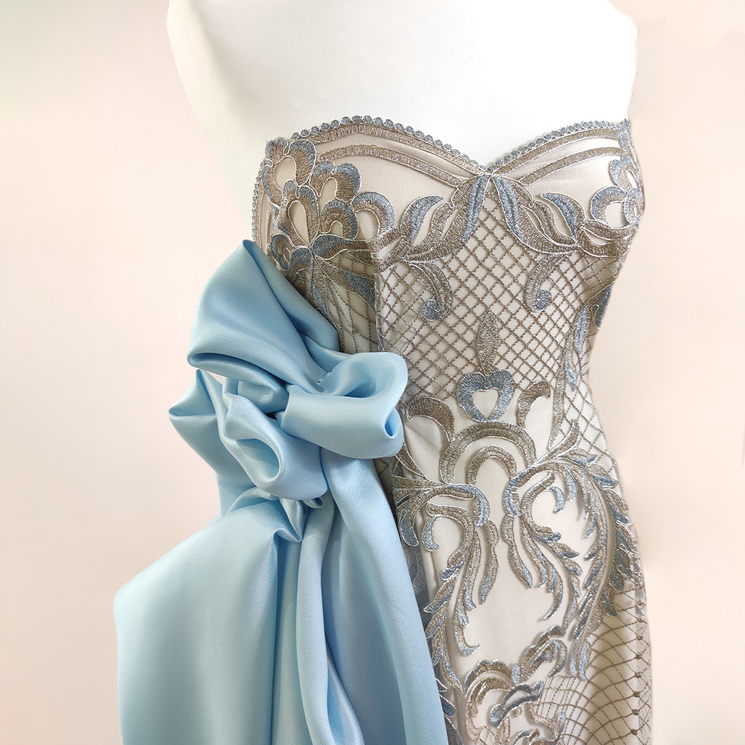 Tessuto Tulle mano seta ricamato ideale per realizzare capi da cerimonia esclusivi ed eleganti.