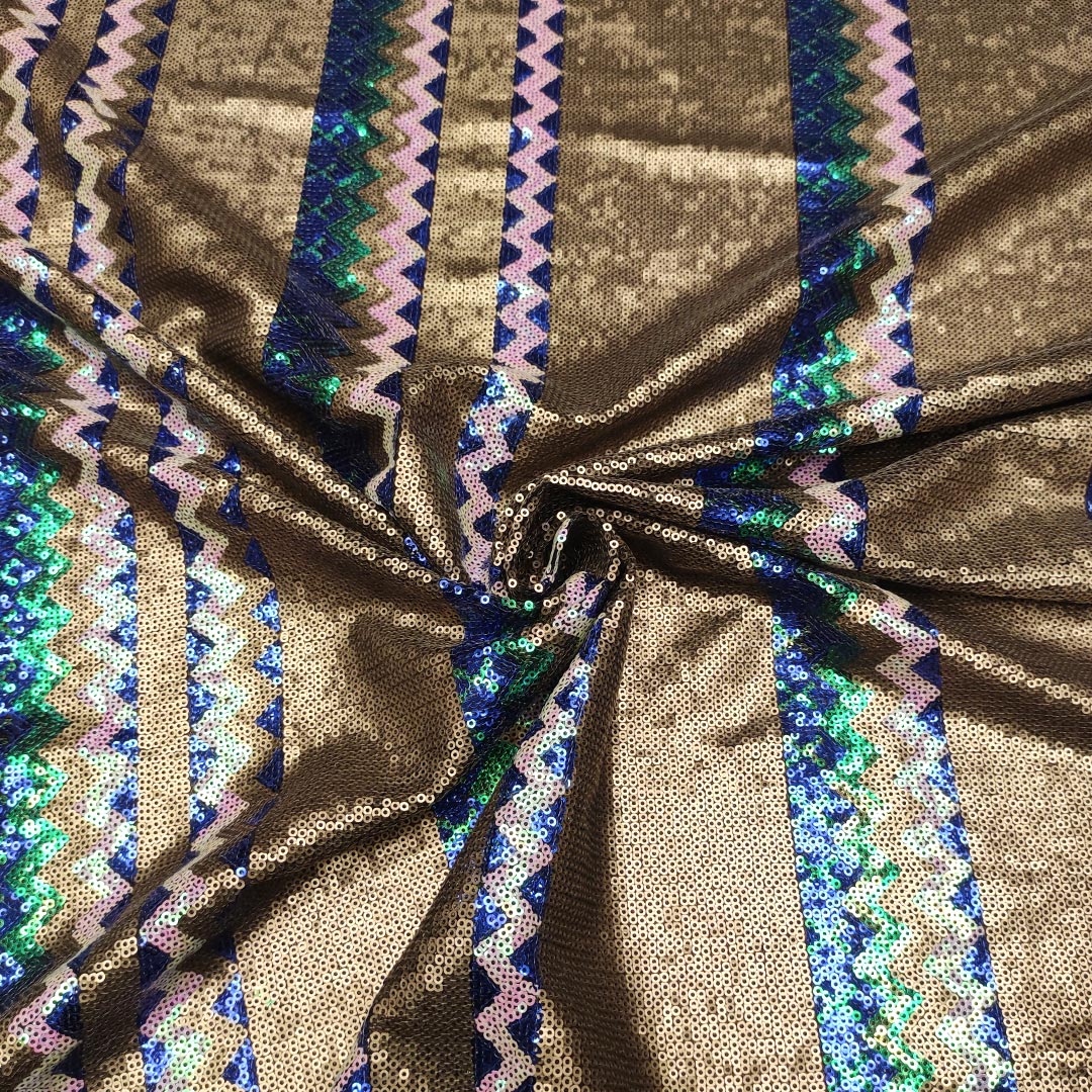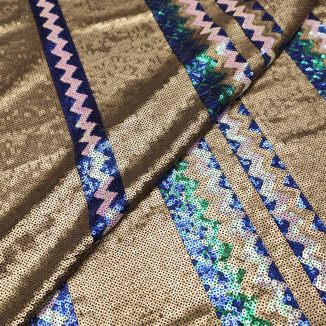 Tessuto Tulle ricamato con paillettes motivo geometrico rosa – bronzo – royal