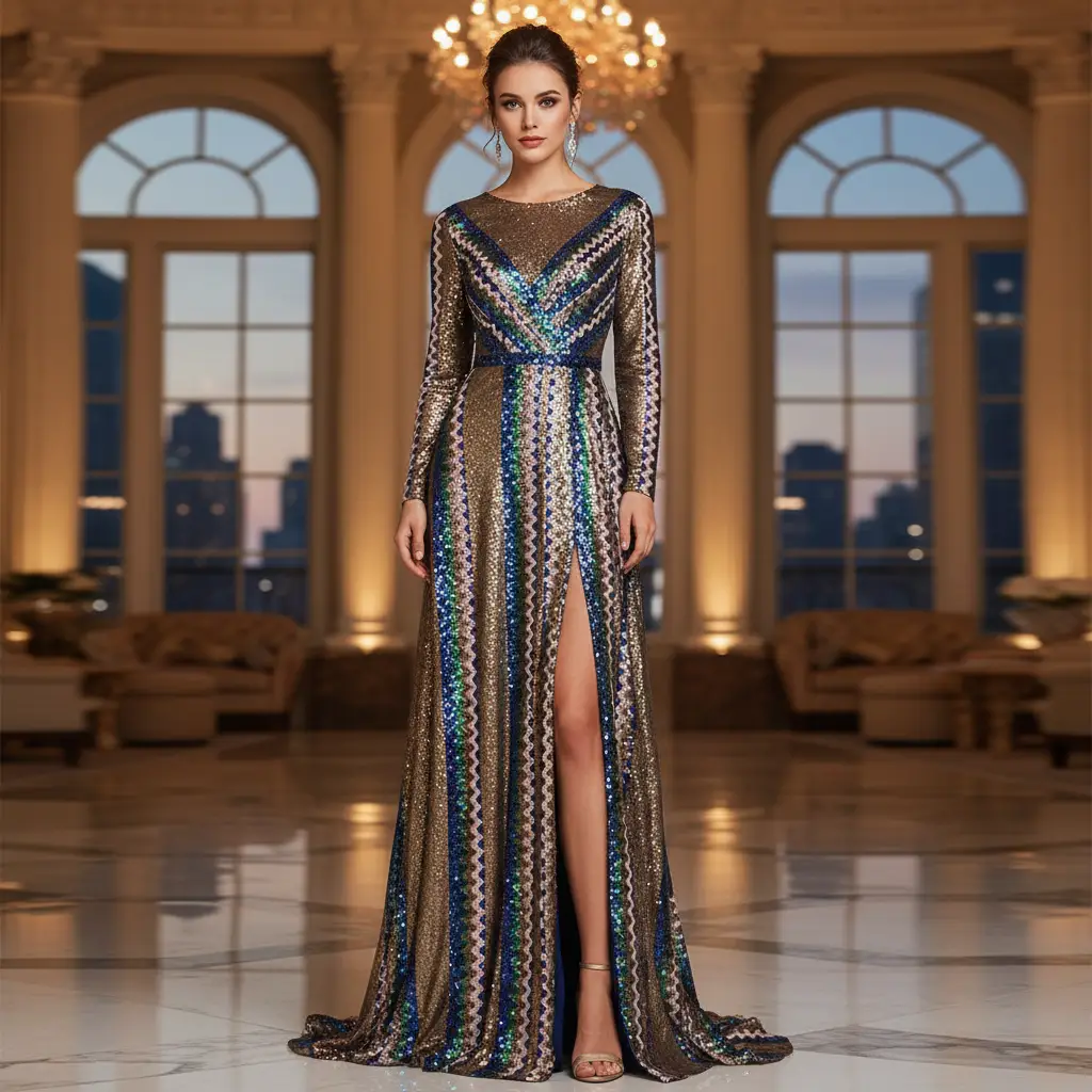 Tessuto Tulle ricamato con paillettes ideale per realizzare capi da cerimonia esclusivi ed eleganti.