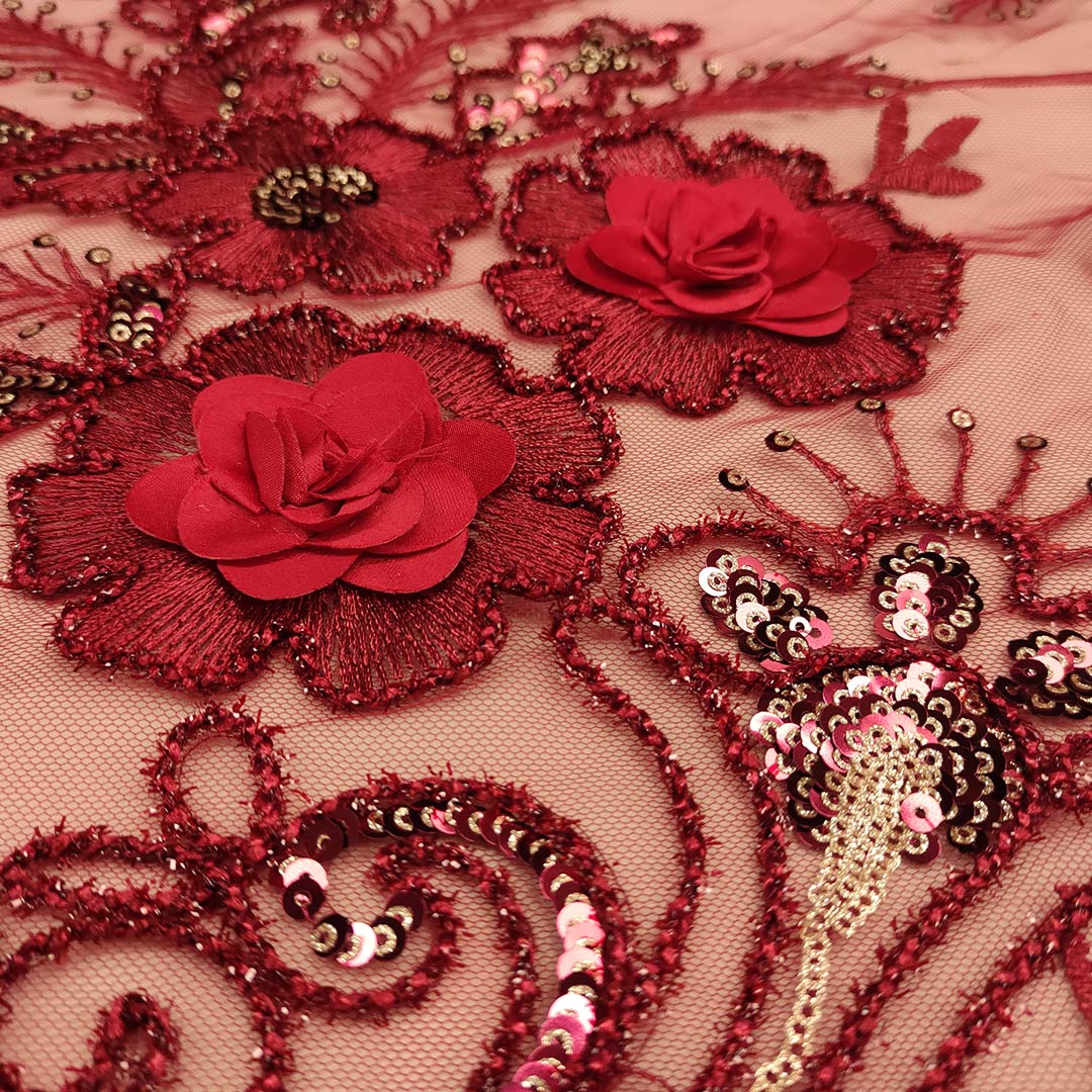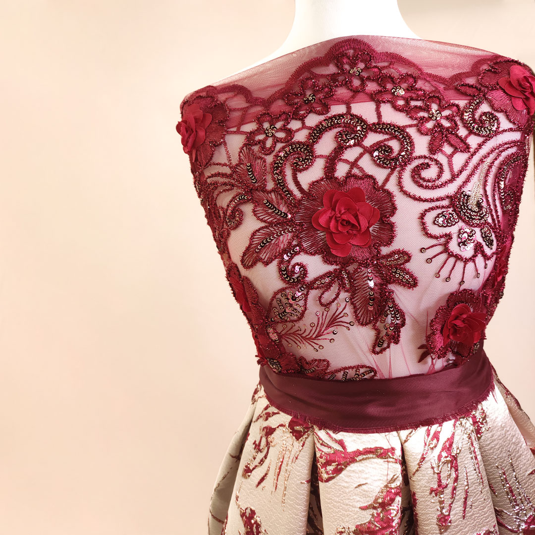 Tessuto broccato in seta a fantasia motivo floreale rosso – oro