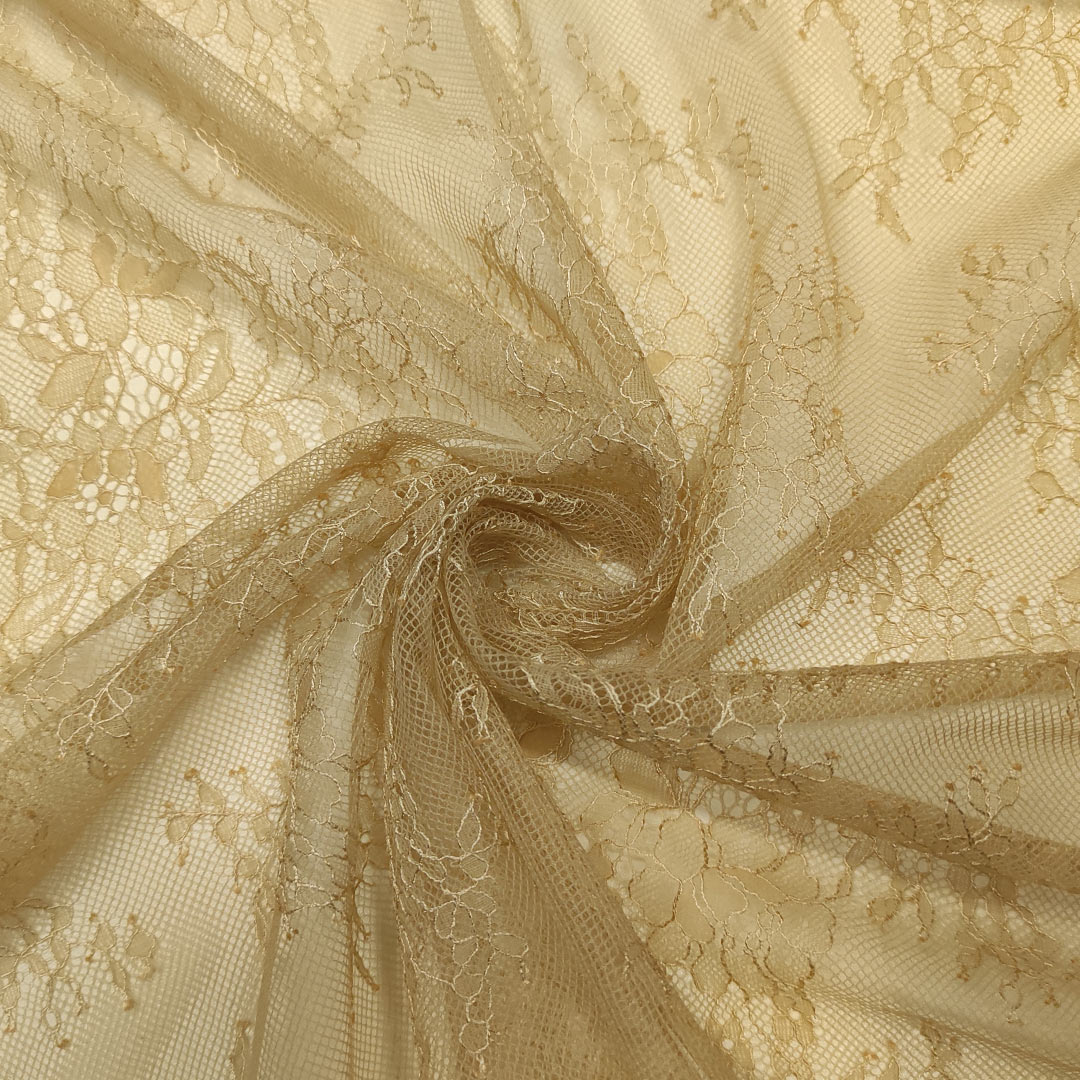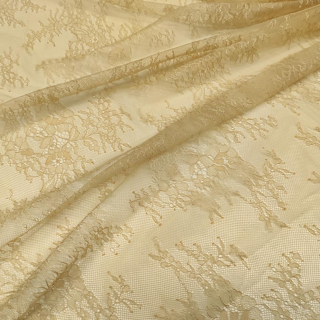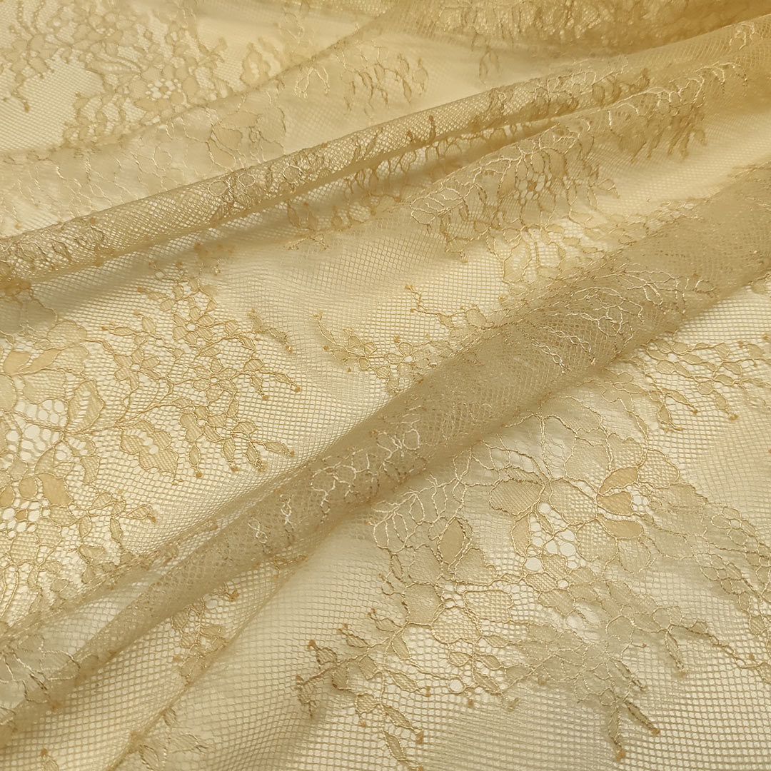 Tessuto pizzo chantilly motivo floreale beige