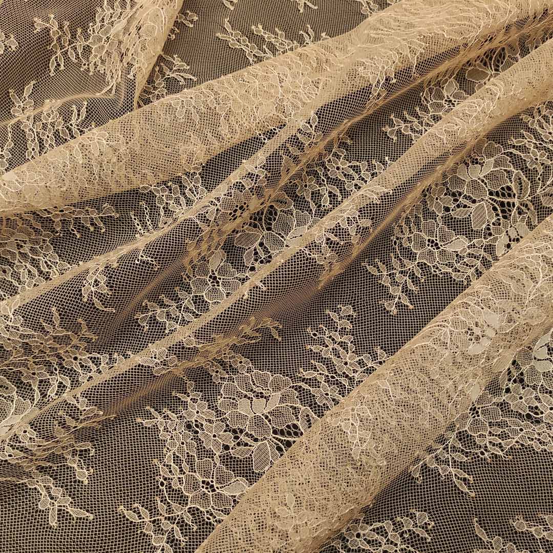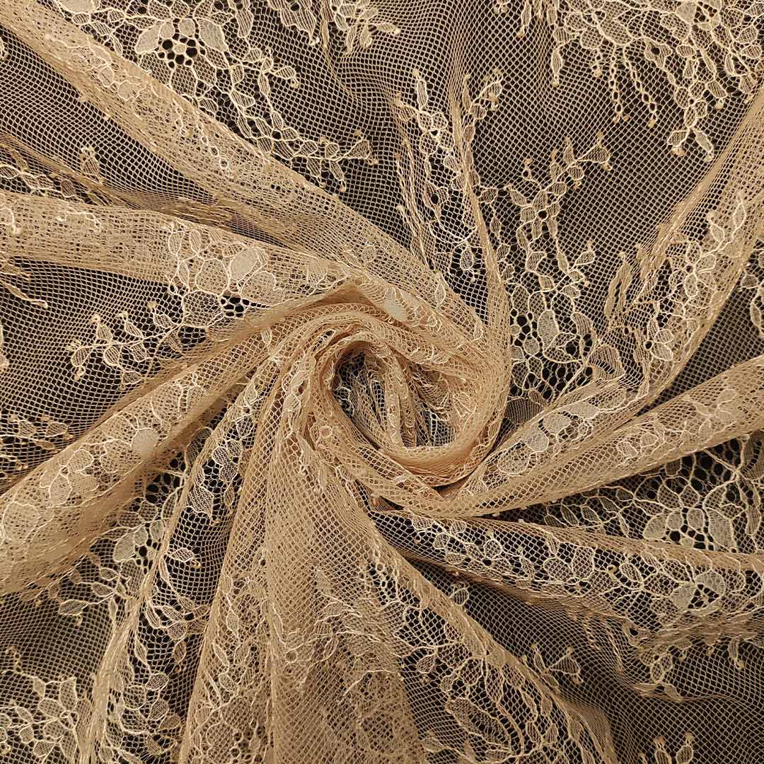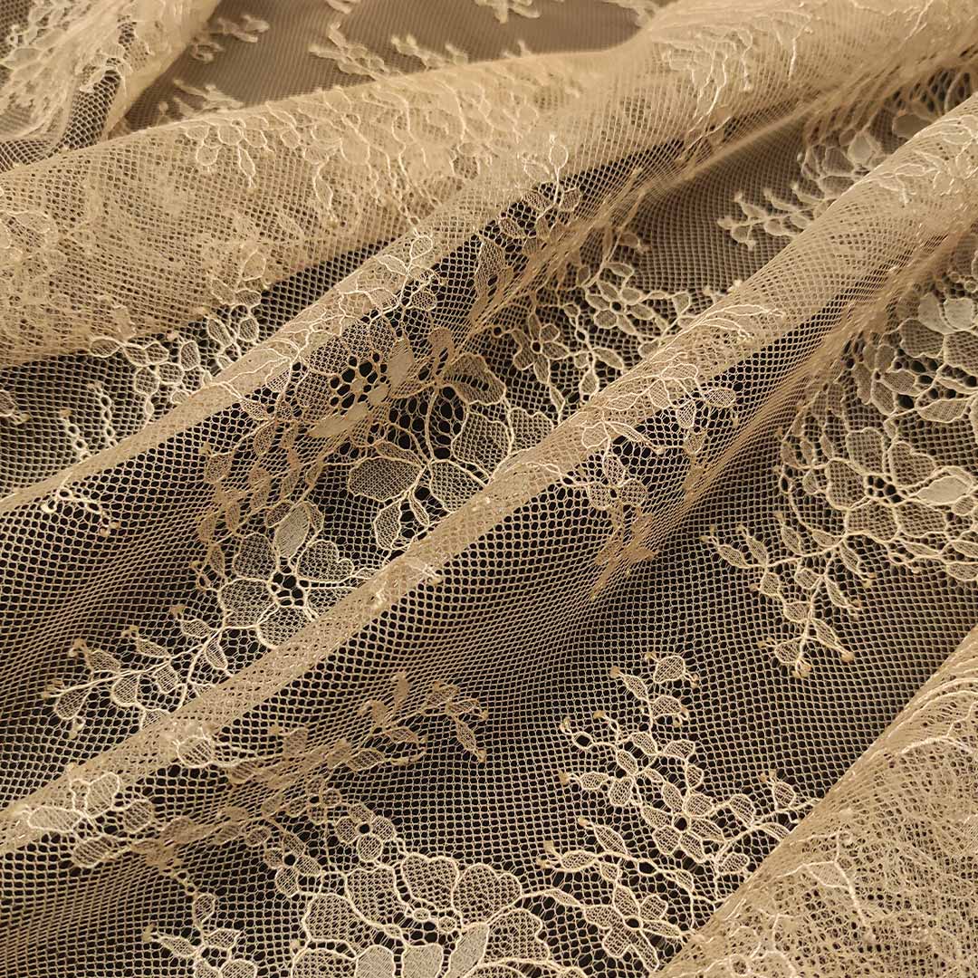 Tessuto Pizzo Chantilly dalla mano morbida e leggera, ideale per realizzare capi da cerimonia e per le grandi occasioni.