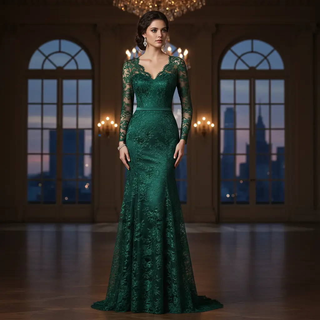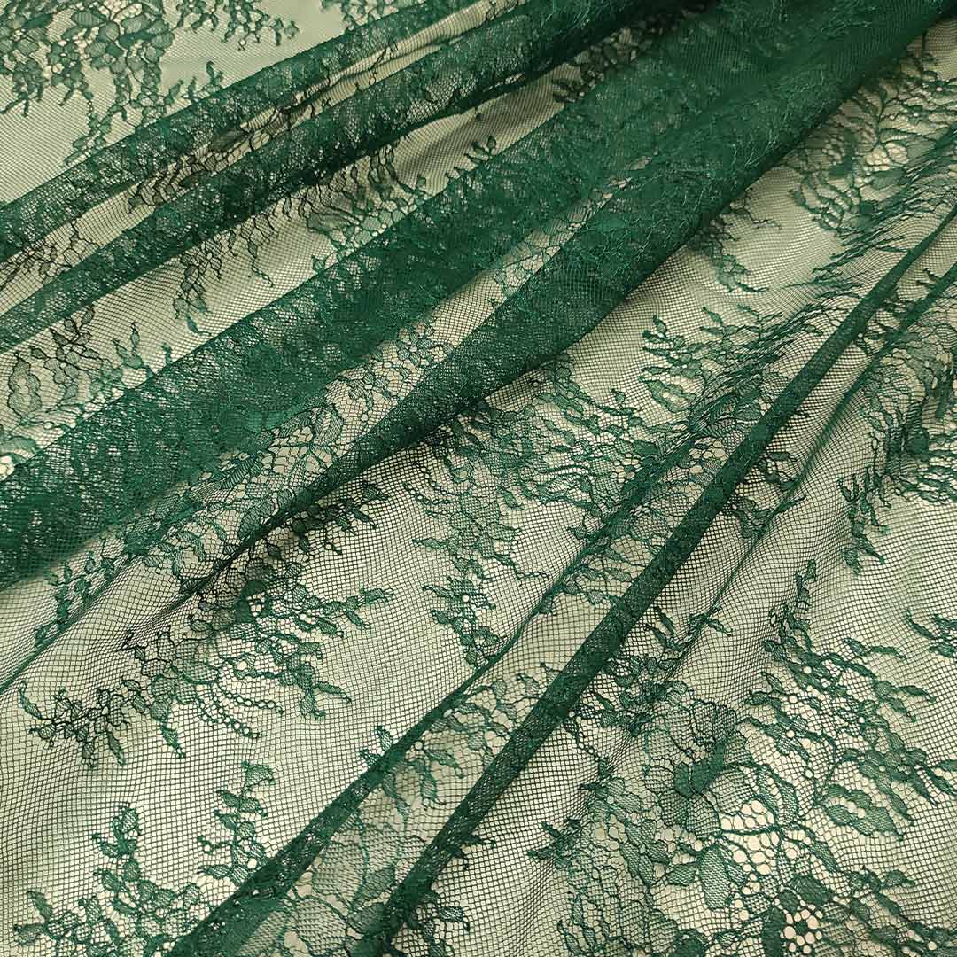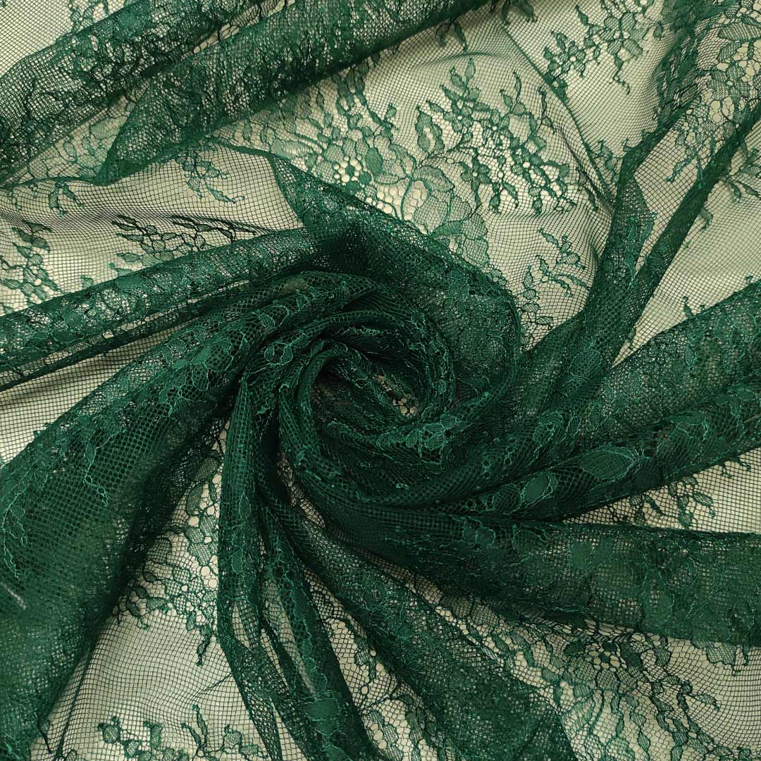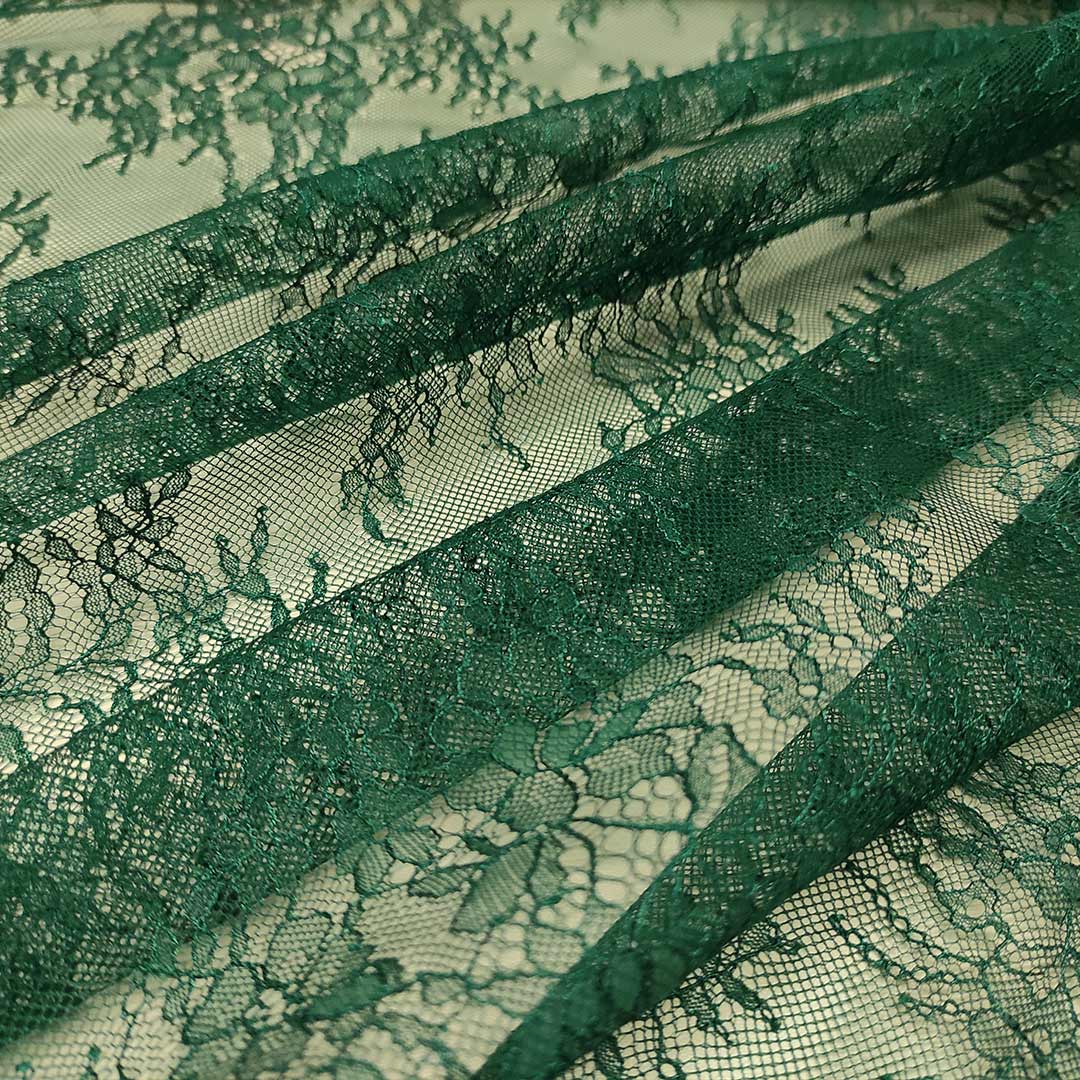 Tessuto pizzo chantilly motivo floreale verde smeraldo