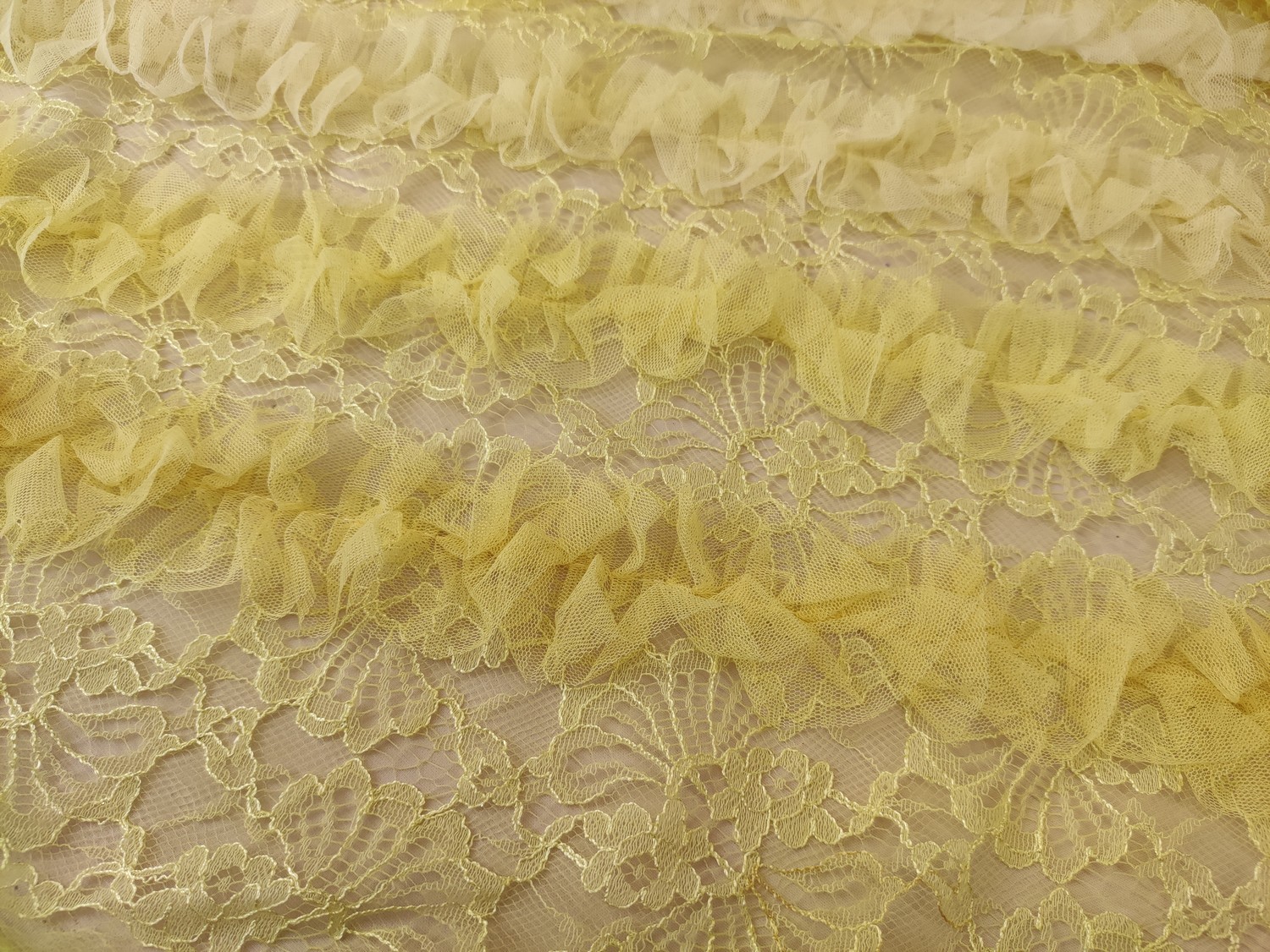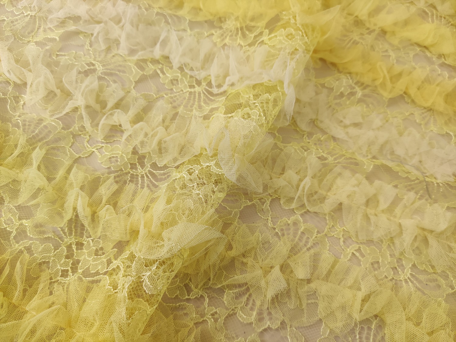 Tessuto pizzo chantilly ricamato con balze in tulle 3d giallo