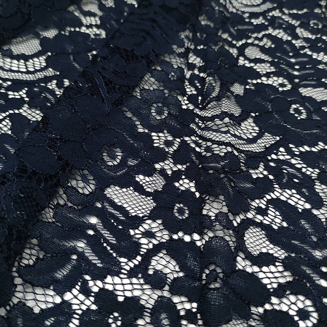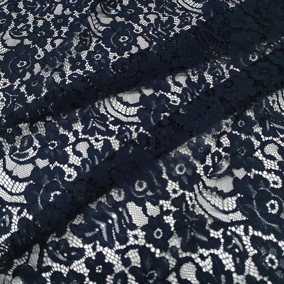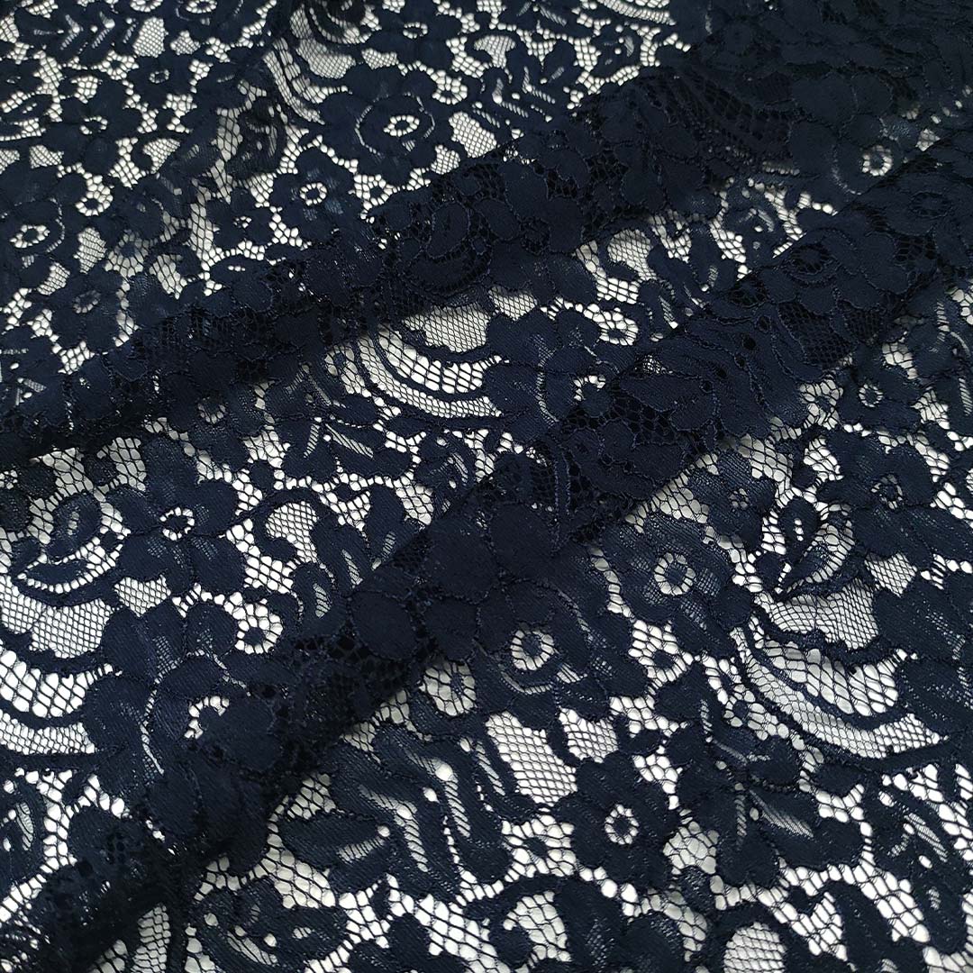Tessuto pizzo elasticizzato motivo floreale blu notte
