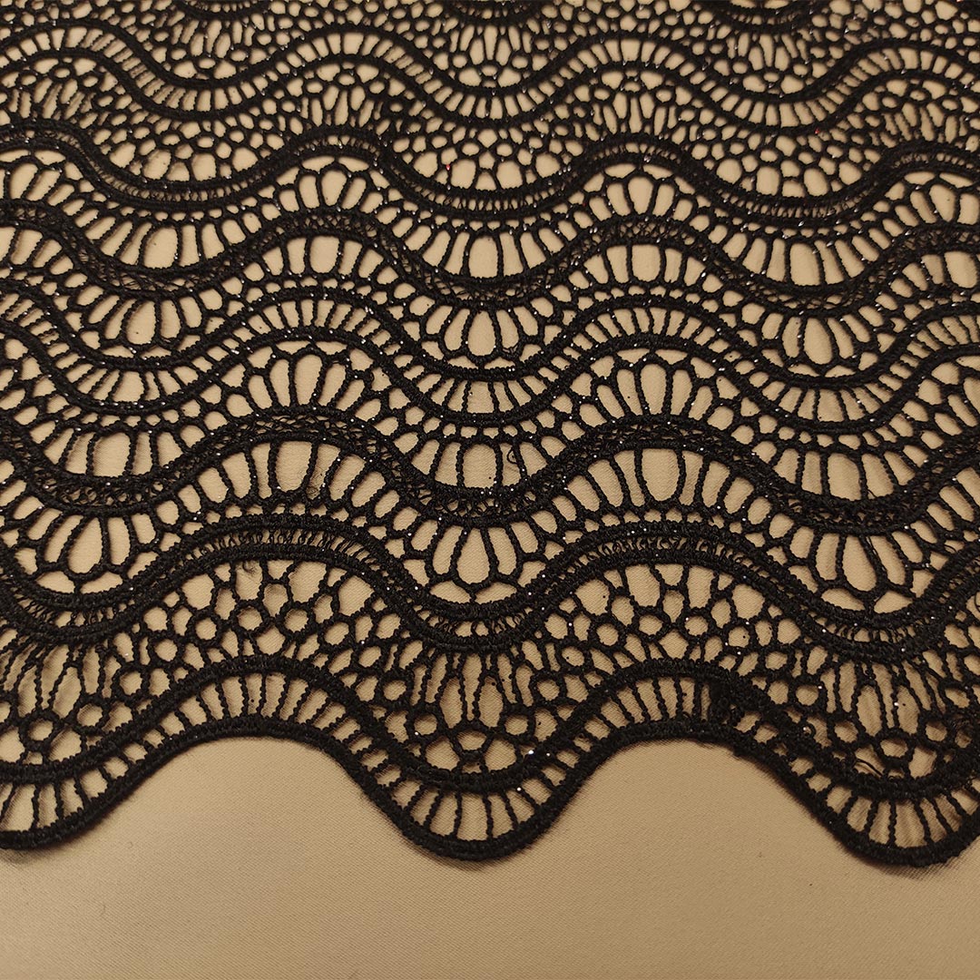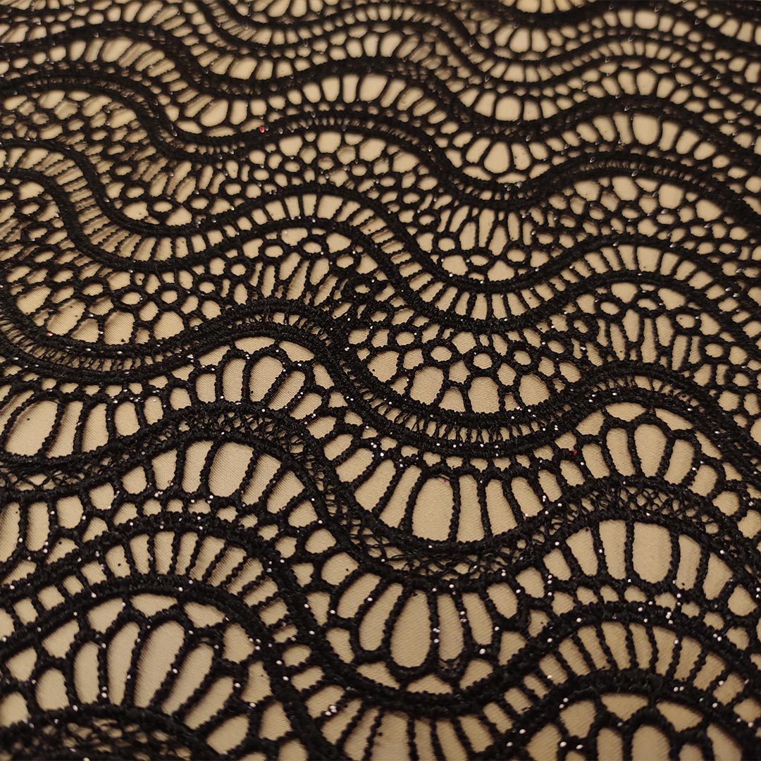 Tessuto Pizzo macramè con glitter motivo astratto nero