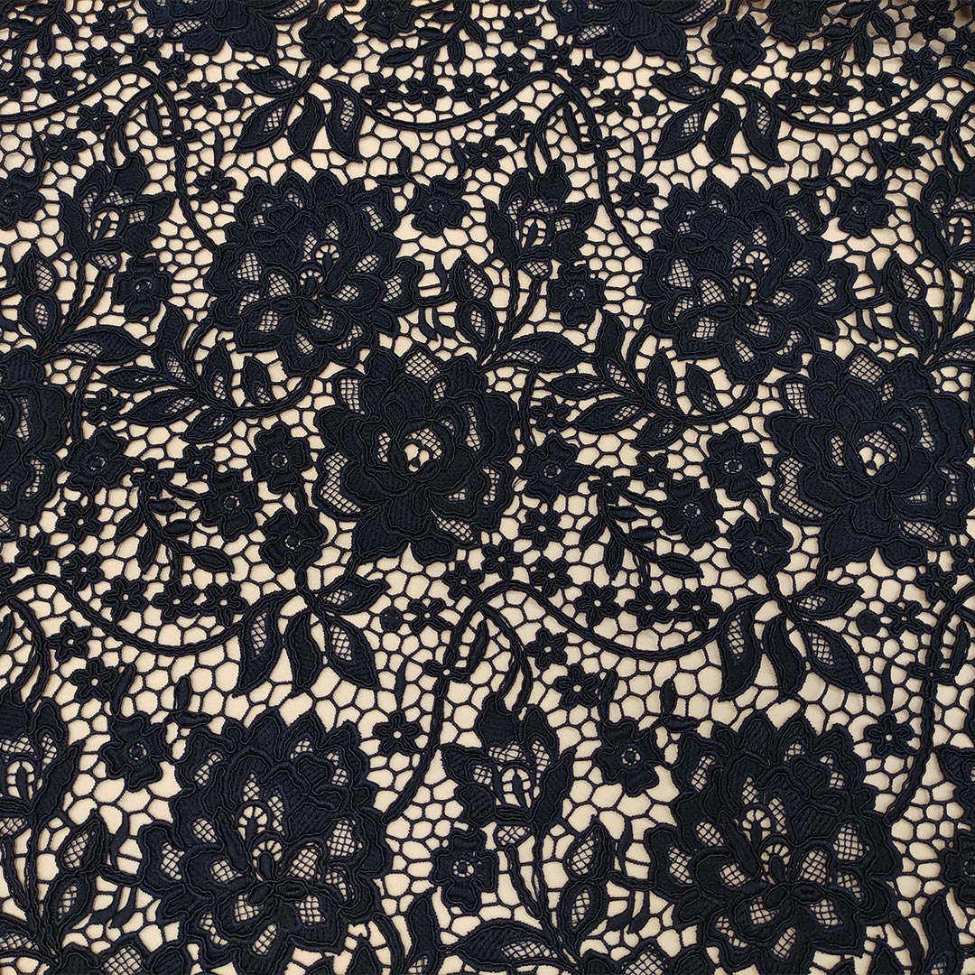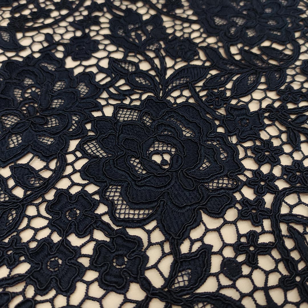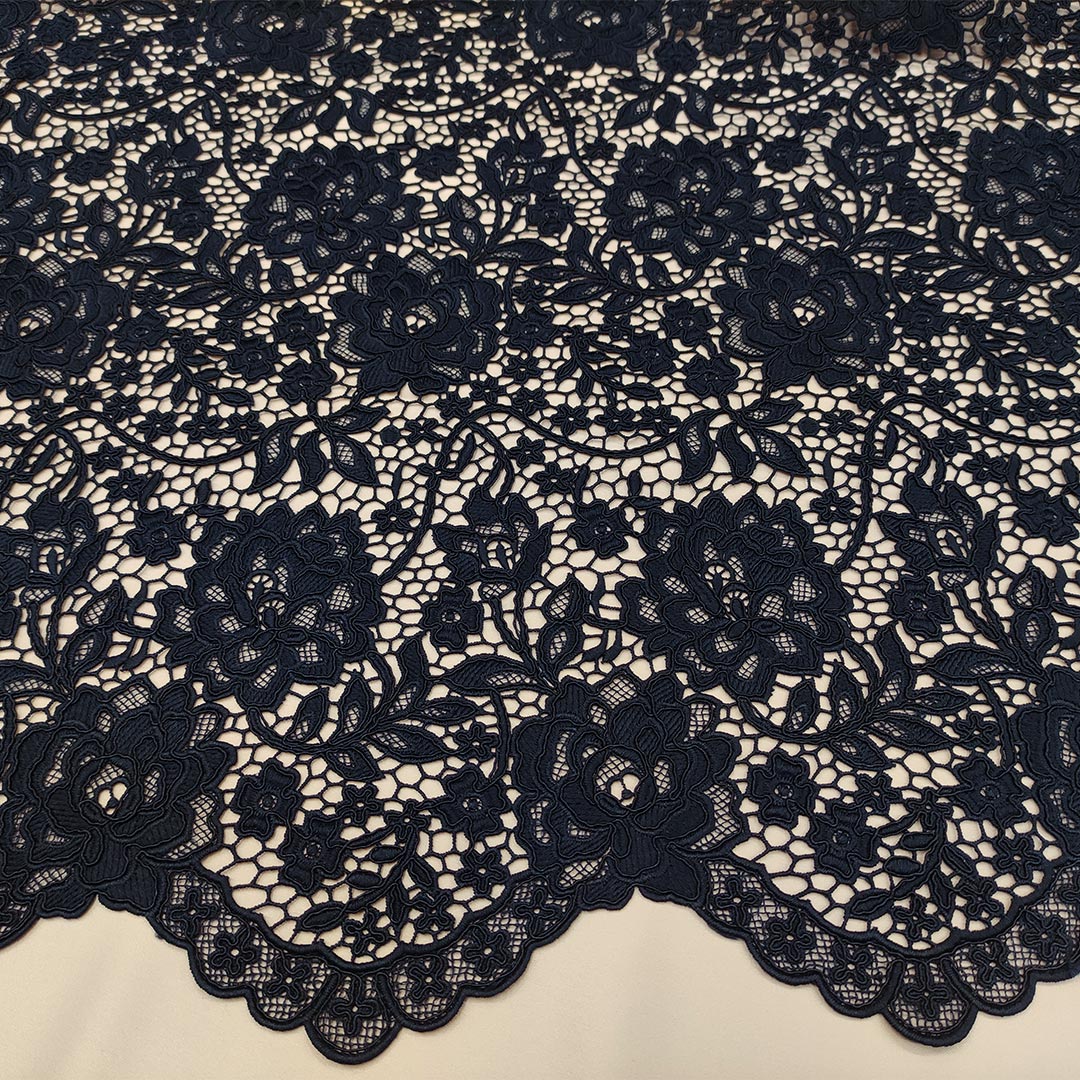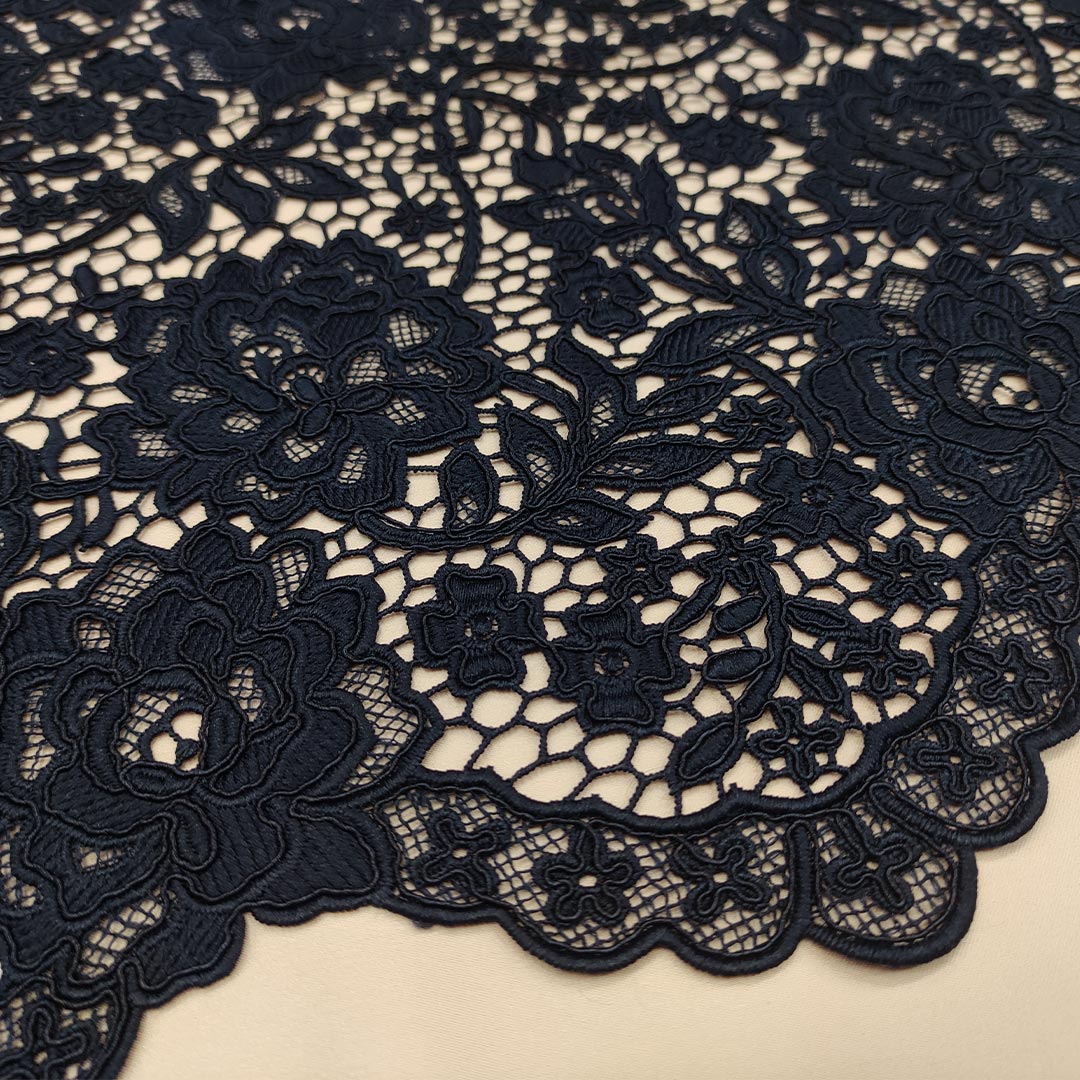 Tessuto Pizzo macramè doppio smerlo motivo floreale blu notte