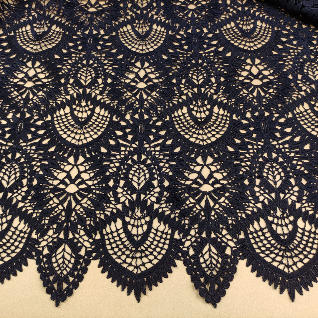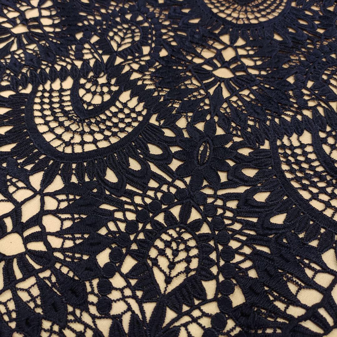Tessuto Pizzo macramè motivo astratto blu