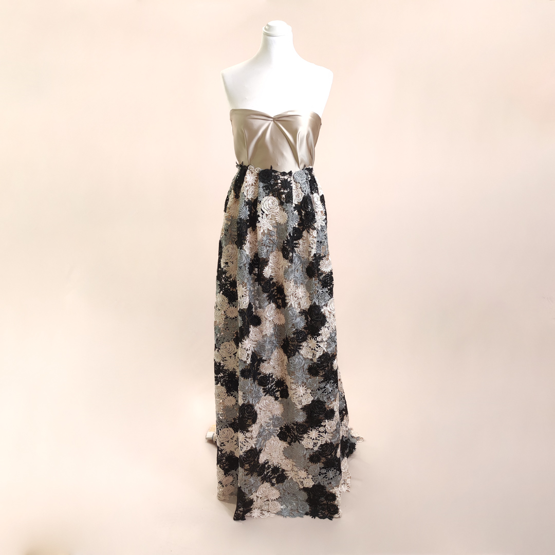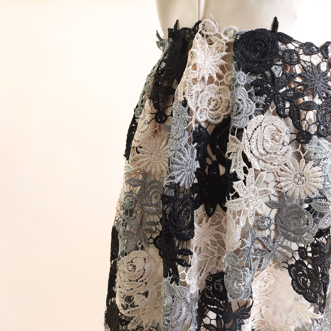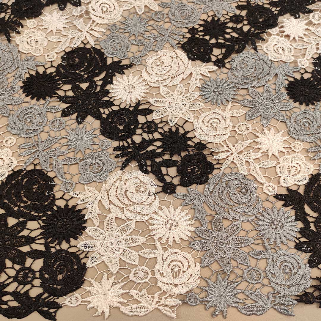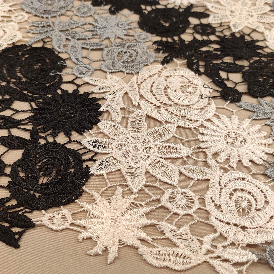 Tessuto Pizzo Macramè motivo floreale beige – nero – grigio