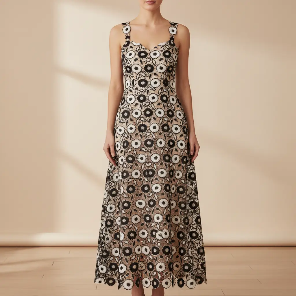 Tessuto Pizzo macramè motivo floreale bianco – nero