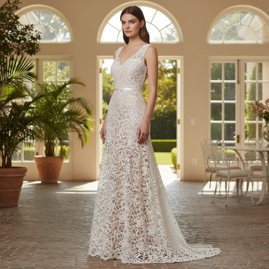 Tessuto pizzo macramè ideale per creare capi sartoriali da cerimonia e per le grandi occasioni originali e alla moda.