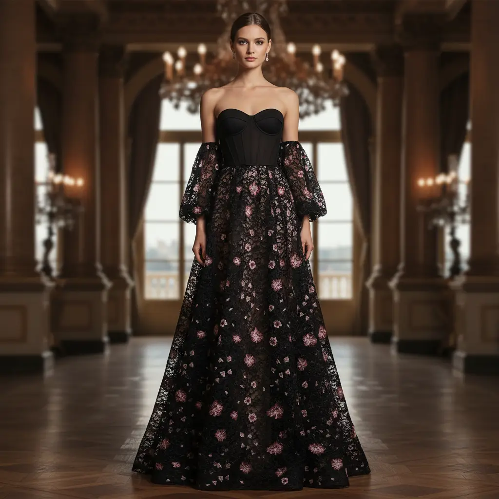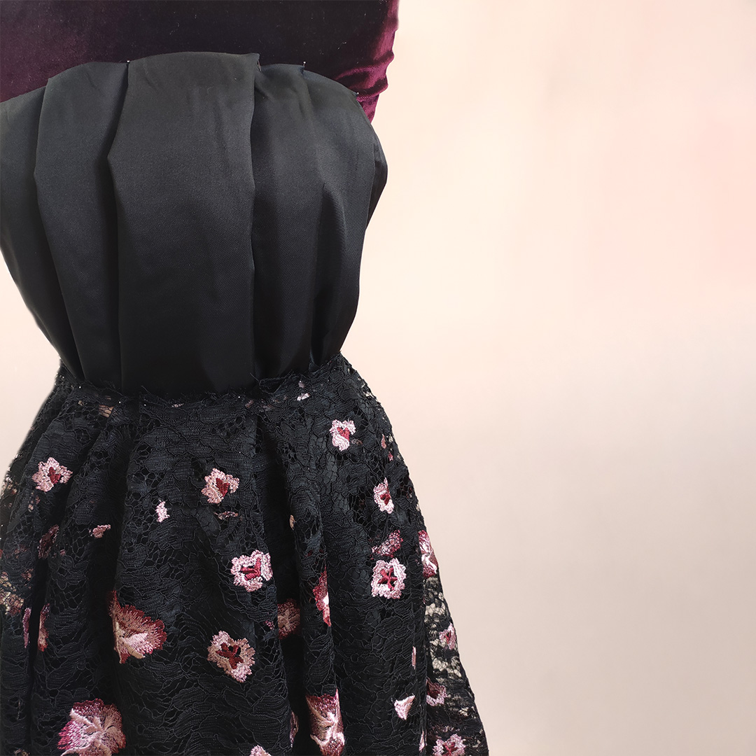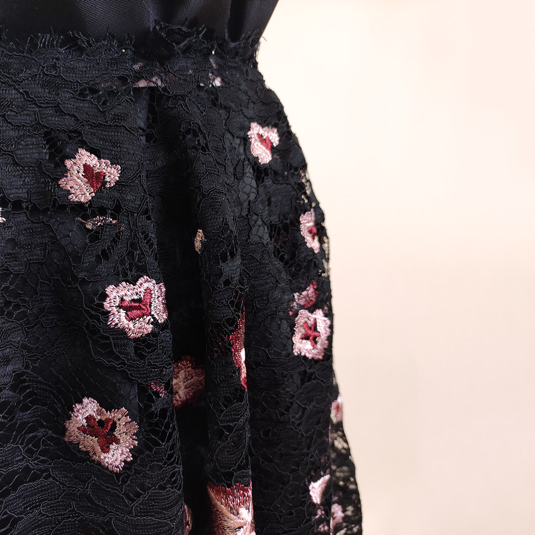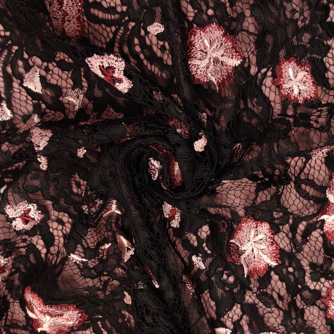 Tessuto Pizzo Macramè motivo floreale nero – rosa – bordeaux