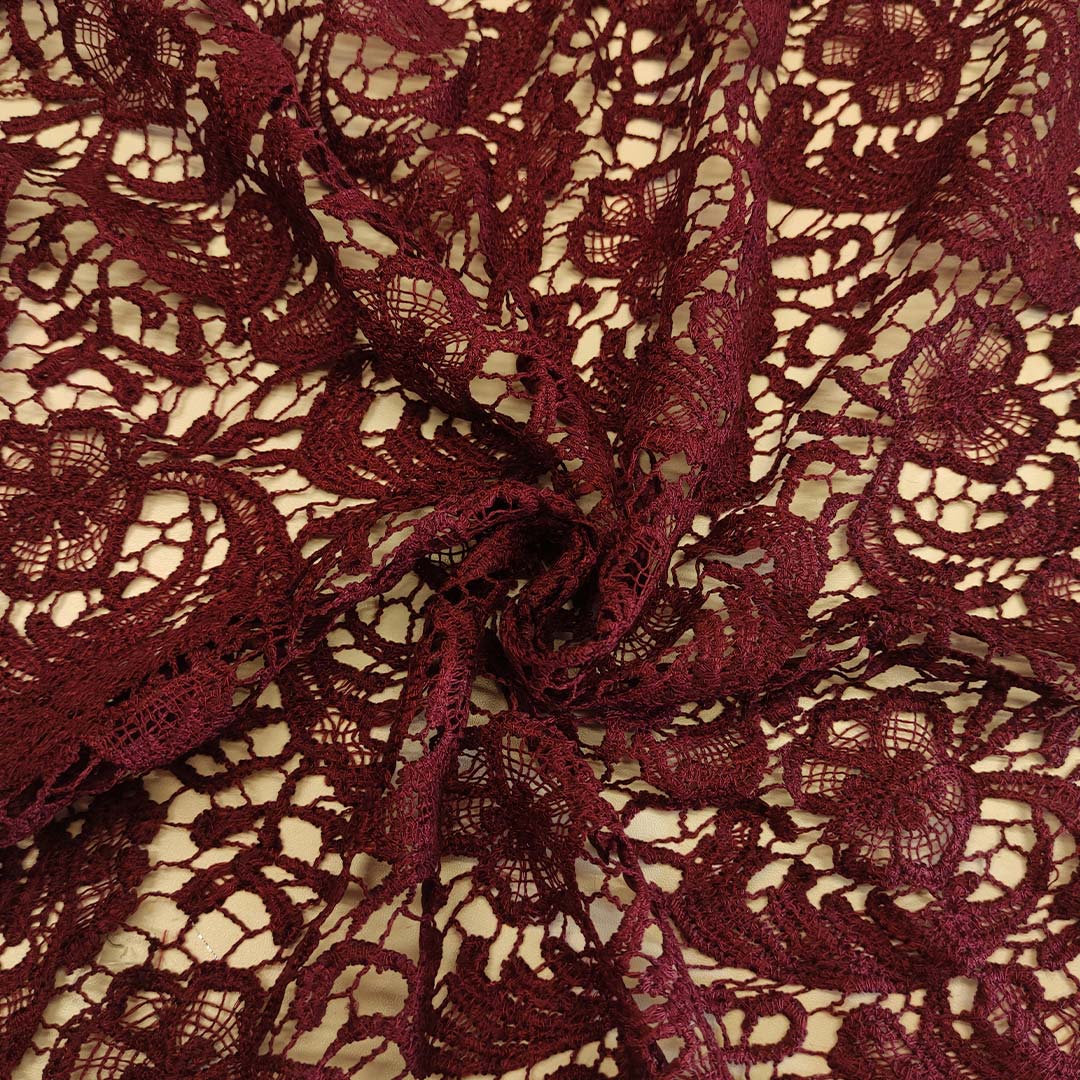 Tessuto Pizzo Macramè motivo floreale vinaccio