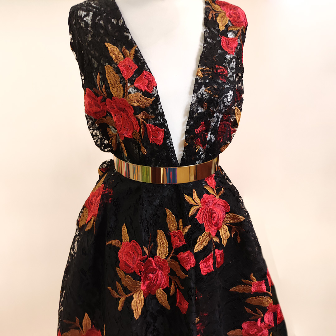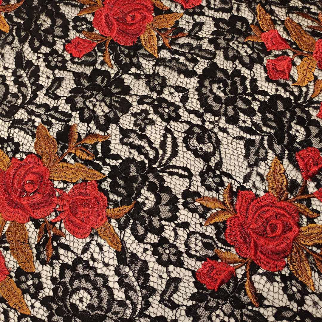 Tessuto Pizzo Macramè ricamato motivo floreale nero – rosso – marrone