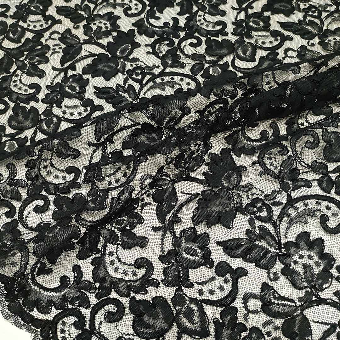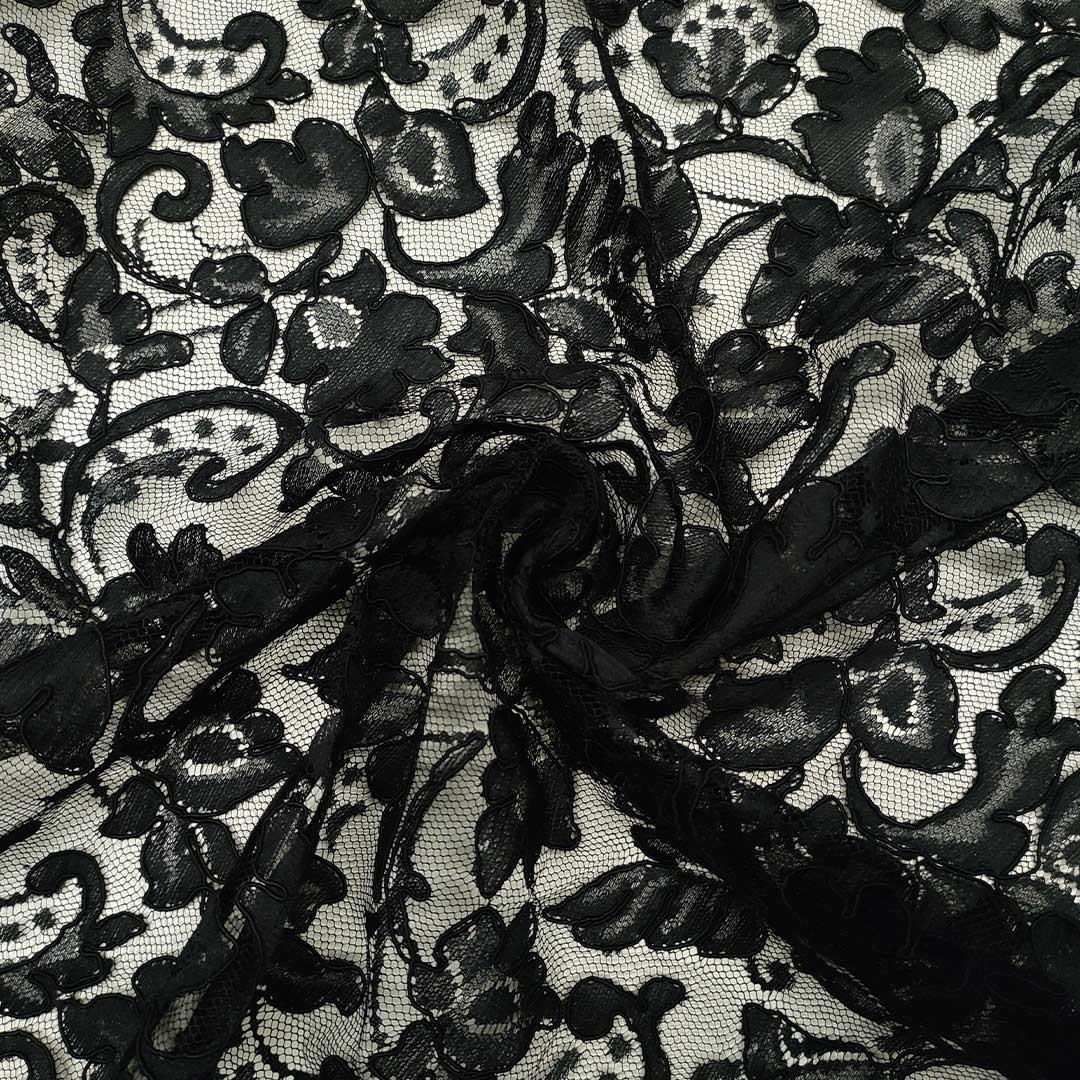 Tessuto pizzo su tulle elasticizzato motivo floreale nero 04